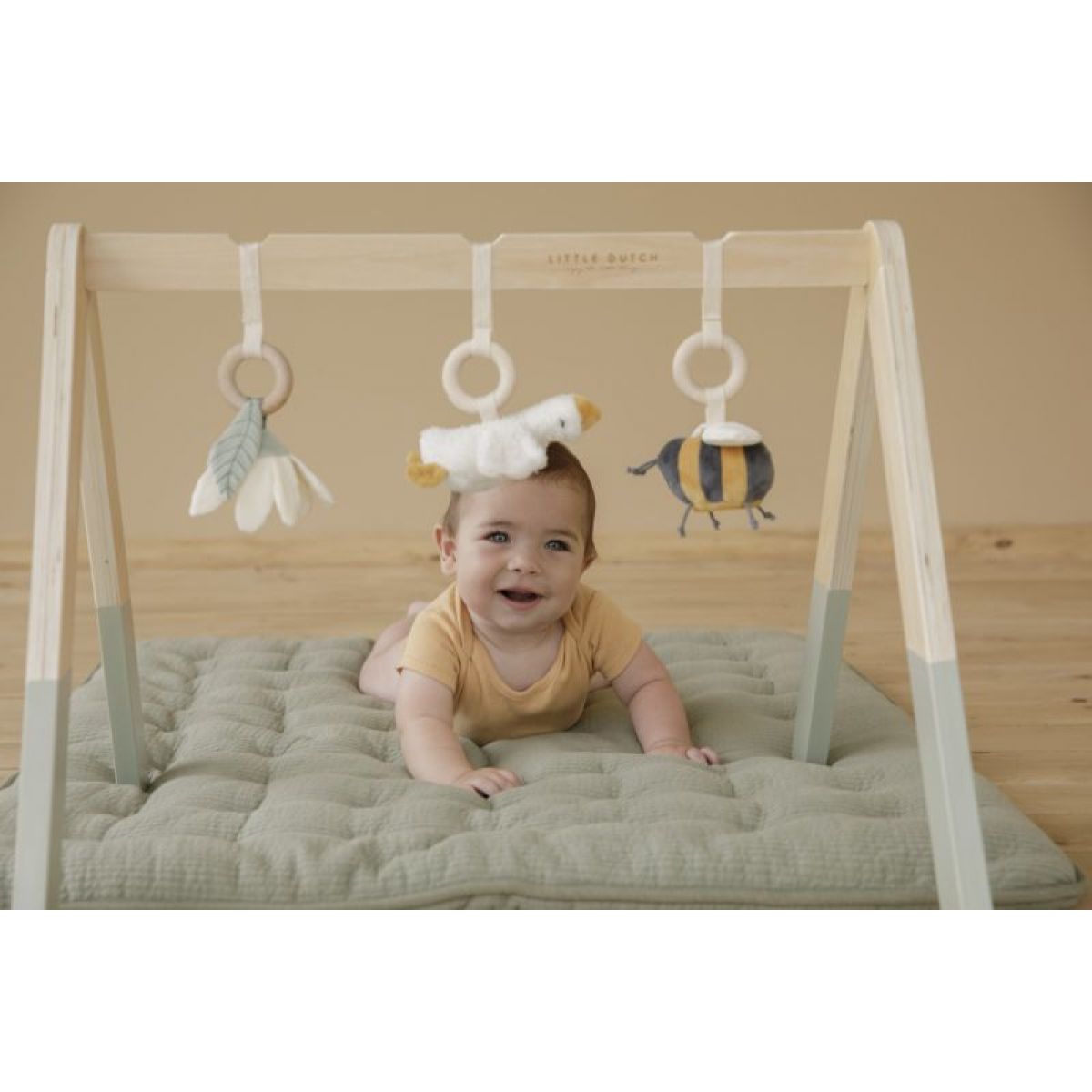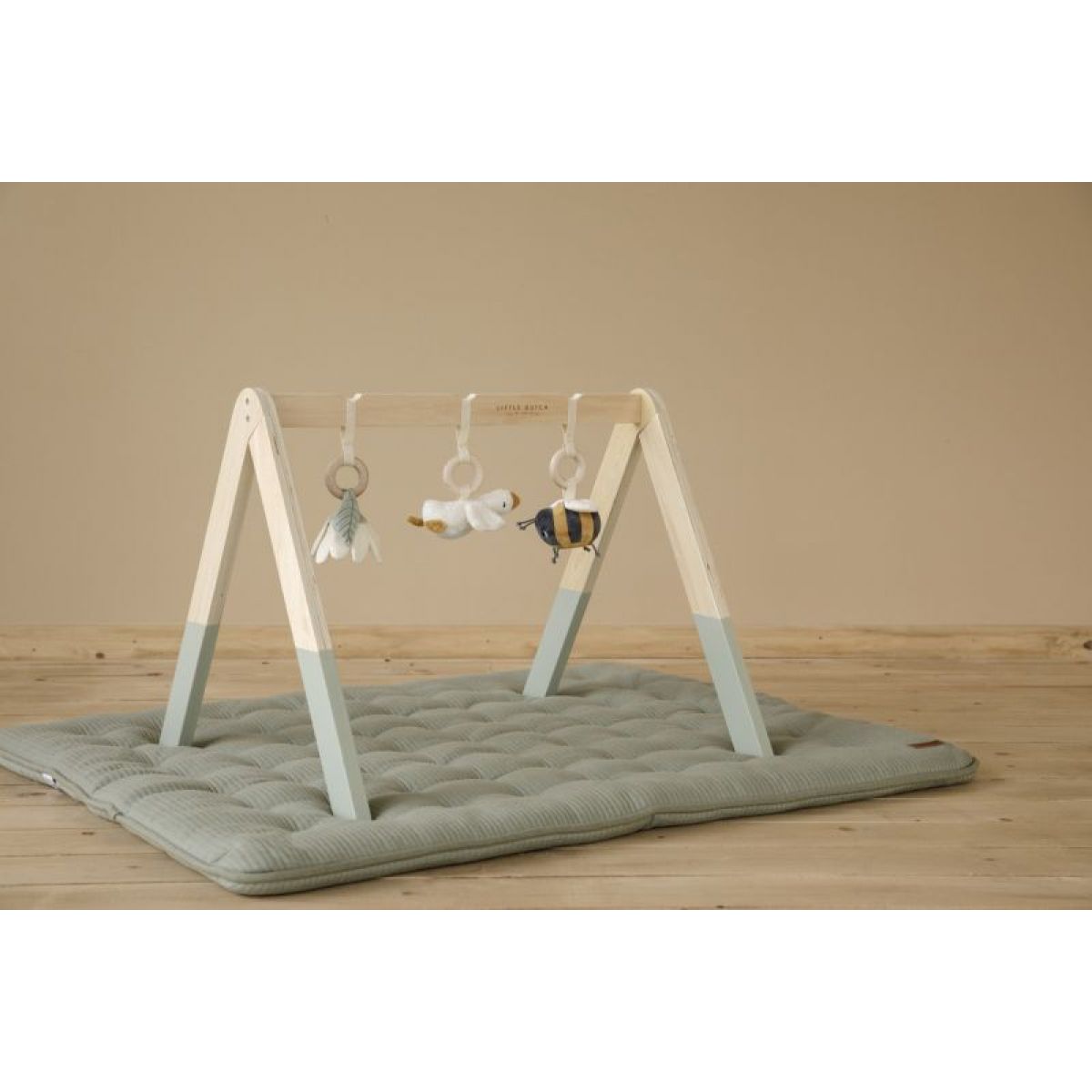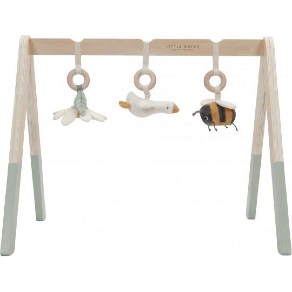 Hrazda je vyrobena z vysoce kvalitního odolného dřeva. Odnímatelné hračky je možné používat i samostatně. Hrazda je součástí designové kolekce hraček Little Dutch Husa.