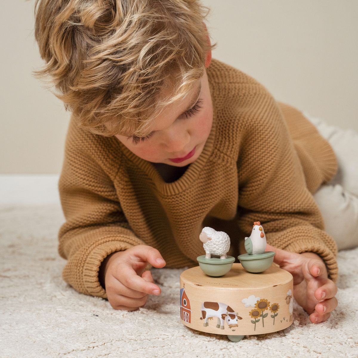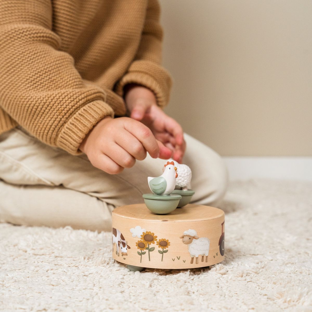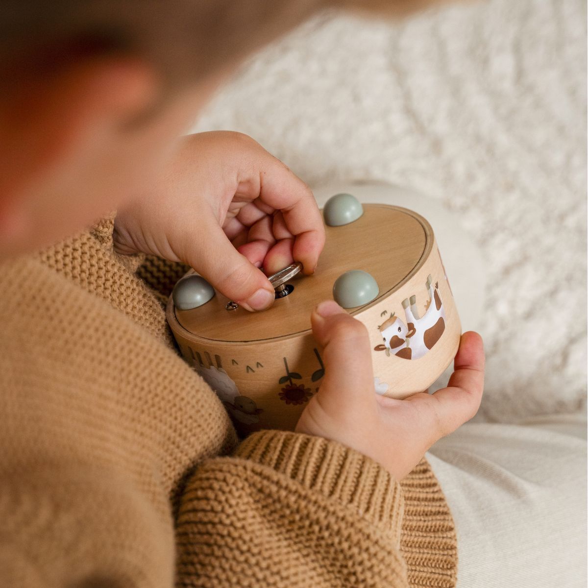 Objevte svět zábavy s hudebním boxem Little Dutch Farma, který vyniká krásným dřevěným provedením a motivy ze života na farmě. Po natažení hraje oblíbenou melodii „Old MacDonald Had a Farm“, zatímco se ovečka a slepička ladně pohybují. Tento hudební box je ideální pro malé děti od 12 měsíců a přináší do dětského pokoje nejen hudbu, ale i kouzelnou atmosféru farmy. Rozměry 26 x 9 x 4,1 cm zajišťují snadnou manipulaci a bezpečné používání. Využijte designovou kolekci Little Dutch Farma a doplňte pokojíček o další krásné doplňky.