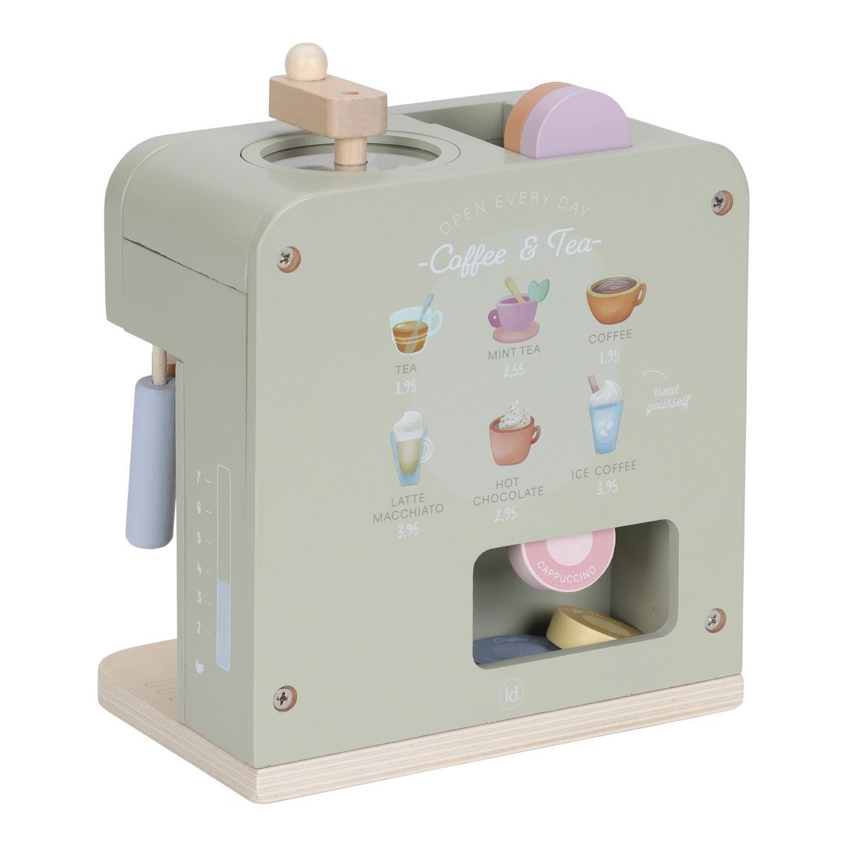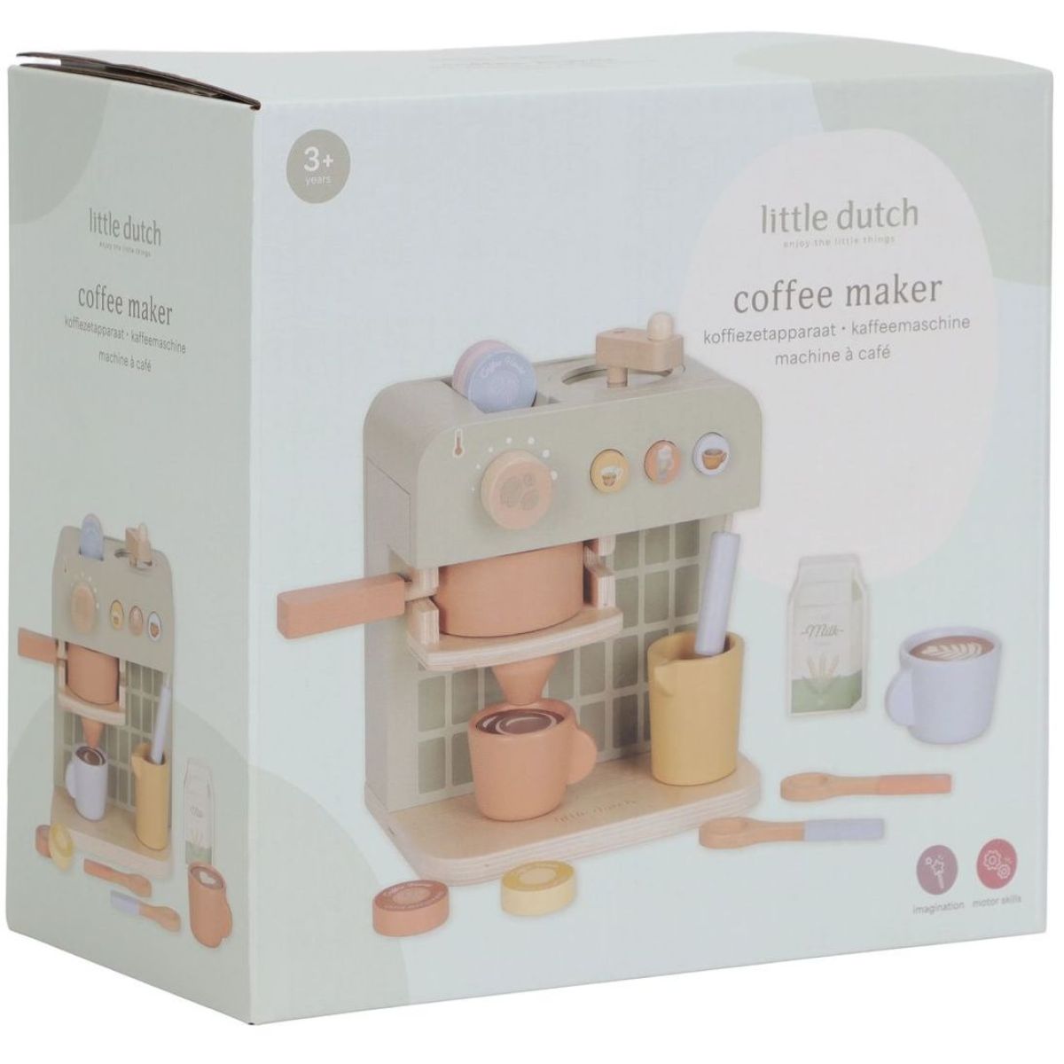 Objevte svět zábavy s dřevěným kávovarem na kapsle od Little Dutch, který promění každé dítě v malého baristu. Tento krásný kávovar nabízí bohatou sadu příslušenství včetně dvou hrnků, pěti kávových kapslí, krabičky mléka, džbánku, dvou lžiček a roztomilých šablon pro latte art. Hra podporuje kreativitu, jemnou motoriku a sociální dovednosti dětí. Vyrobeno z odolného FSC certifikovaného dřeva, tento kávovar je ideálním doplňkem dětské kuchyňky nebo prodejního stánku. Rozměry 23,1 × 24,2 × 13 cm, vhodné pro děti od 2 let.