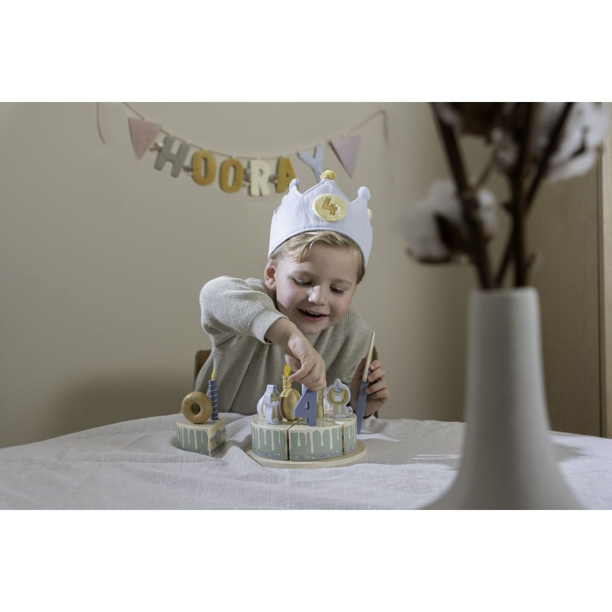 Objevte svět narozeninové zábavy s touto krásnou textilní korunkou od značky Little Dutch. Tento originální doplněk ozvláštní narozeninový den vašeho malého oslavence či oslavenkyně a nabízí výměnná čísla od 1 do 5, takže je ideální pro děti od prvních až po páté narozeniny. Neutrální kolečko s obrázkem zvířátka umožňuje hravé přizpůsobení korunky při hrách na princeznu či krále. Zapínání na suchý zip zajišťuje pohodlné nošení a přizpůsobení velikosti hlavy dítěte. Rozměry korunky jsou 13 x 55,5 x 1,5 cm, což ji činí praktickou a pohodlnou pro malé děti. Věk: 12 měsíců a více. Materiál: textilní. Tento produkt nevyžaduje baterie a je vhodný pro kluky i holky.