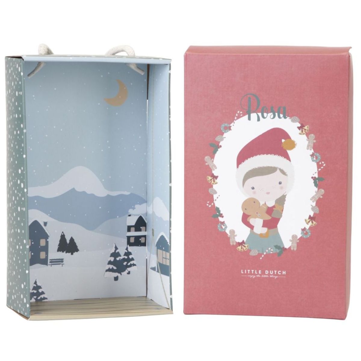 Objevte svět zábavy s plyšovou panenkou Rosa od Little Dutch, která je ideální jako první panenka pro vaše dítě. Tato něžná panenka je oblečena ve speciálním vánočním kostýmu a drží plyšovou postavičku ve tvaru perníčku, což ji činí perfektním vánočním dárkem. Vyrobena z měkkého a jemného materiálu, panenka je vhodná na hraní, mazlení i usínání. Dodává se v krásné dárkové krabičce. Rozměry panenky jsou 35 x 9 x 6 cm. Věk: 1+.