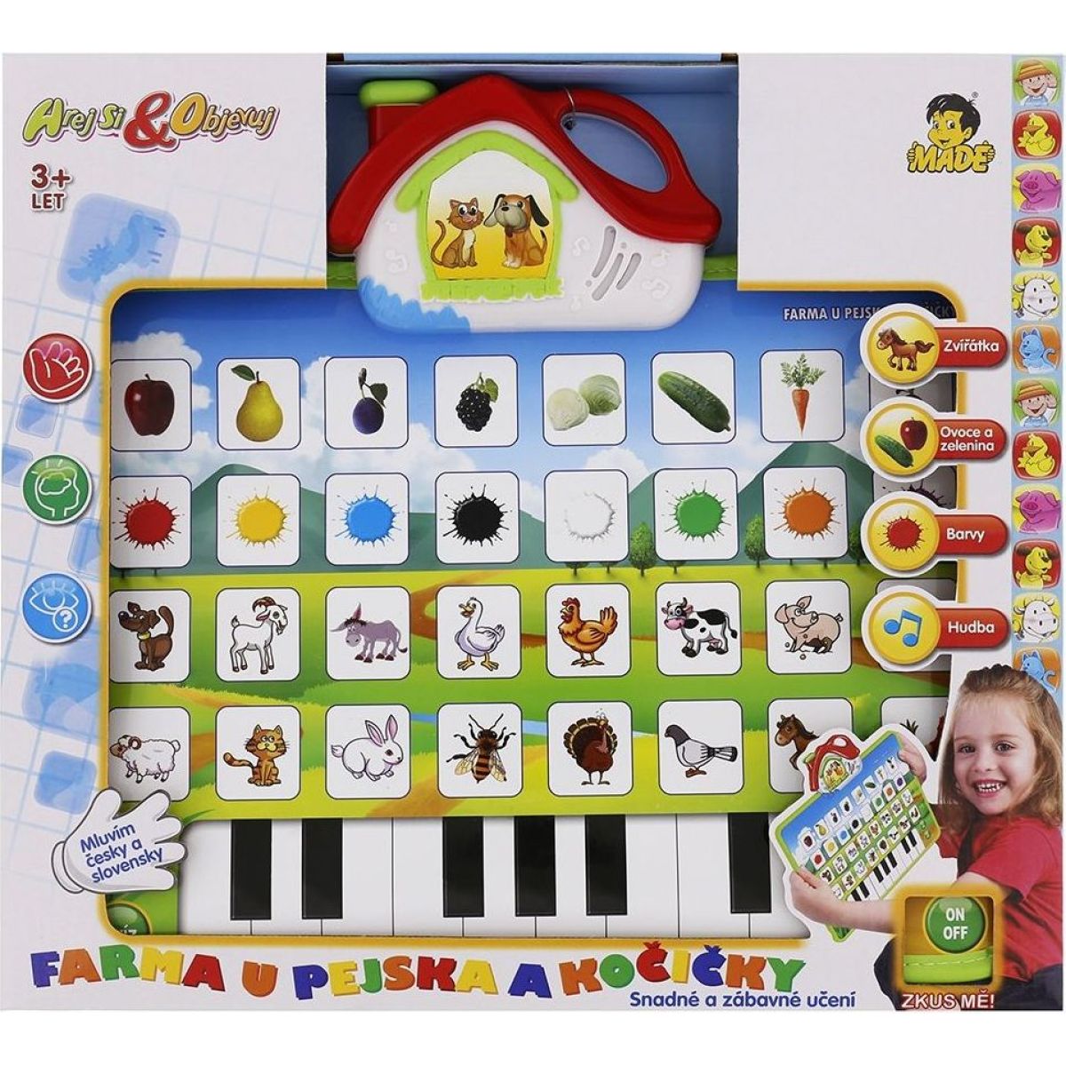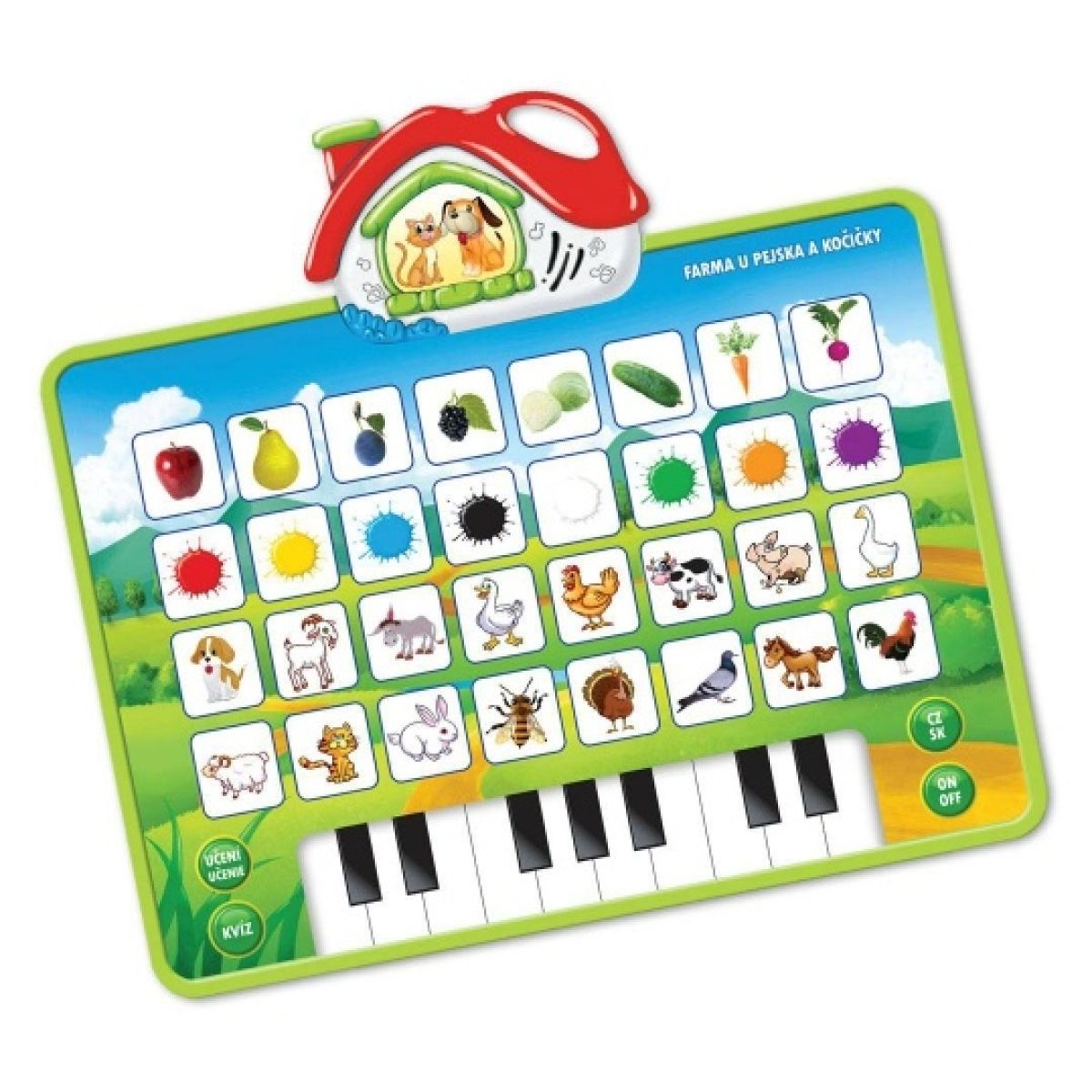 Dotyková podložka, která tě seznámí se zvířátky, s různými druhy ovoce a zeleniny. Naučí tě, jaké zvuky vydávají zvířátka nebo jakou barvu má mrkvička. Předveď své hudební umění na piánku a zahraj své oblíbené písničky a získané znalosti ověř v jednoduchém kvízu.