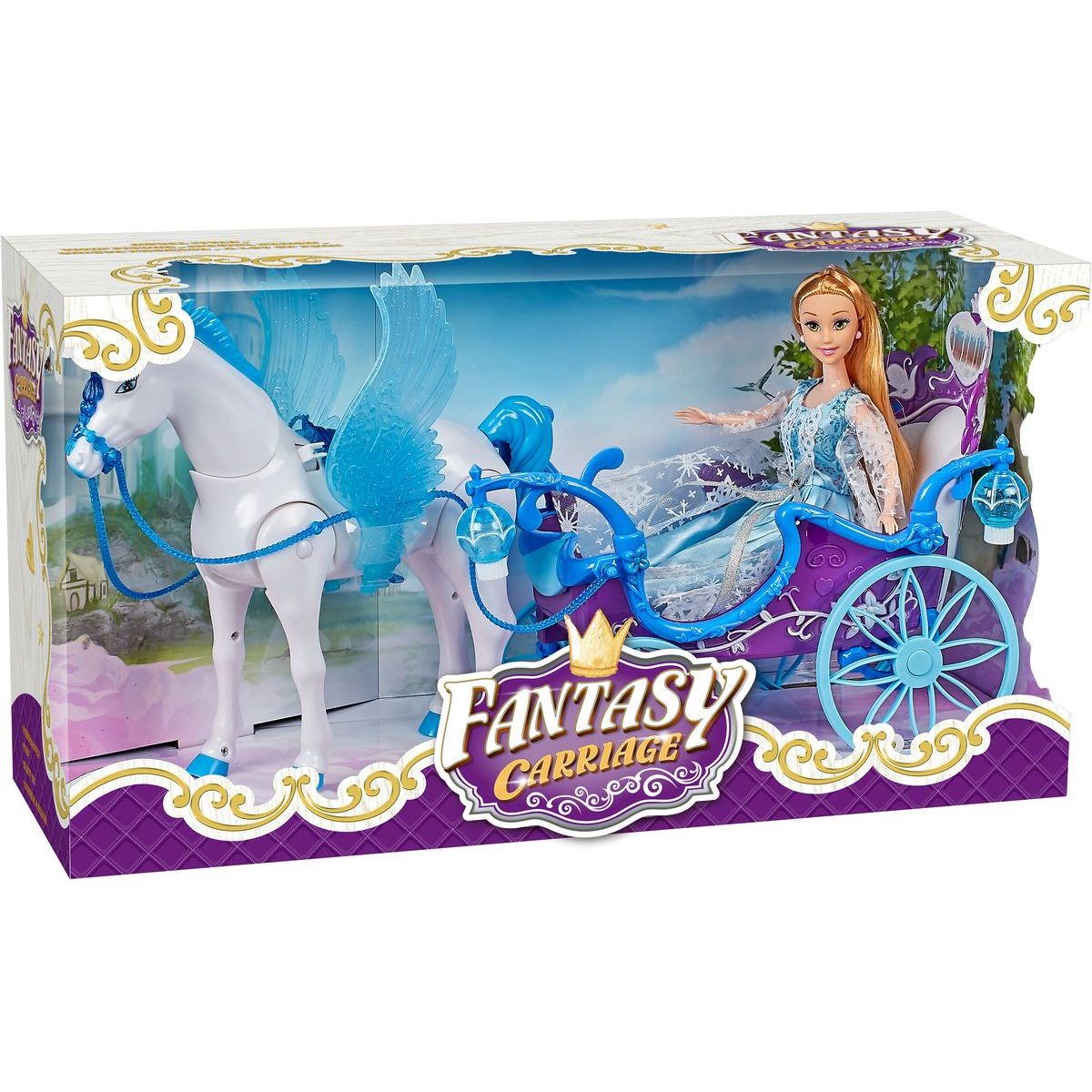 Magický kočár modrý s Pegasem a panenkou - světlo, zvuk