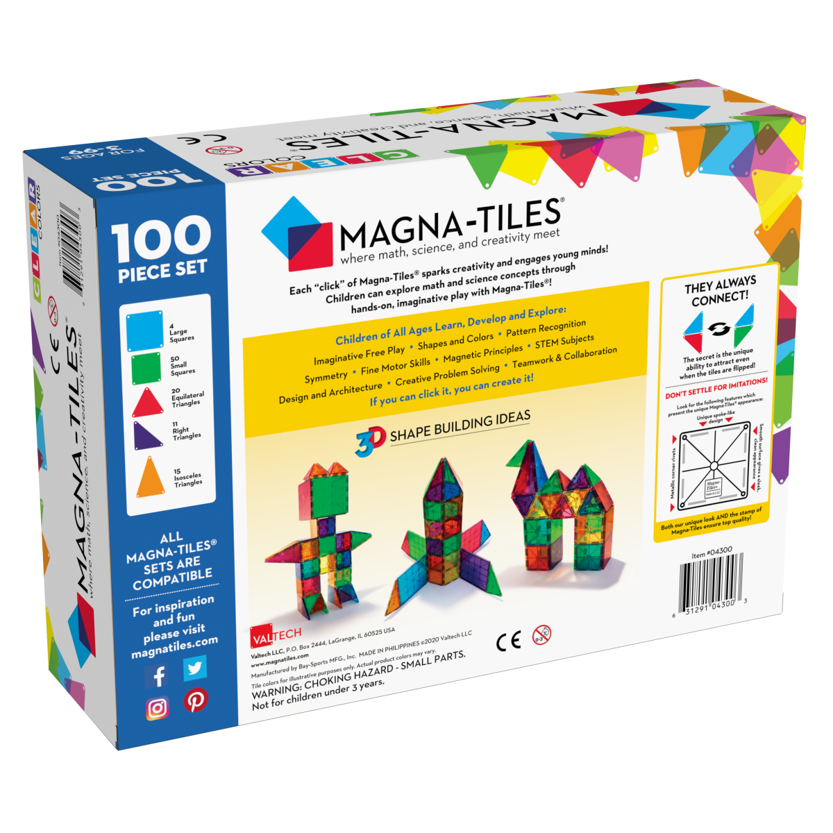 Objevte svět nekonečné kreativity s originální magnetickou stavebnicí Magna-Tiles 100 dílků, která promění každou dětskou představu ve skutečnost. Tato sada nabízí pestrou paletu 100 barevných čtverců a trojúhelníků různých velikostí, jež jsou navrženy tak, aby podporovaly rozvoj jemné motoriky, koordinace ruka-oko a logického myšlení vašich malých stavitelů. Díky kompatibilitě se všemi sadami Magna-Tiles si mohou děti vytvořit neomezené množství tvarů a struktur podle své fantazie. Vyrobeno z potravinářského netoxického plastu MABS bez BPA, ftalátů a latexu, což zaručuje bezpečnost a dlouhou životnost výrobku. Pevná konstrukce zabraňuje praskání dílků a udržuje magnety pevně na svém místě – ideální pro hodiny tvůrčí zábavy plné objevování a učení.