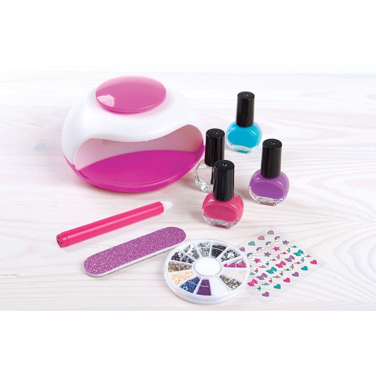Vytvořte si své vlastní nehtové studio se sušičkou na nehty, s barevnými laky, obtisky a kamínky. Vaše nehty poté budou krásné a originální.