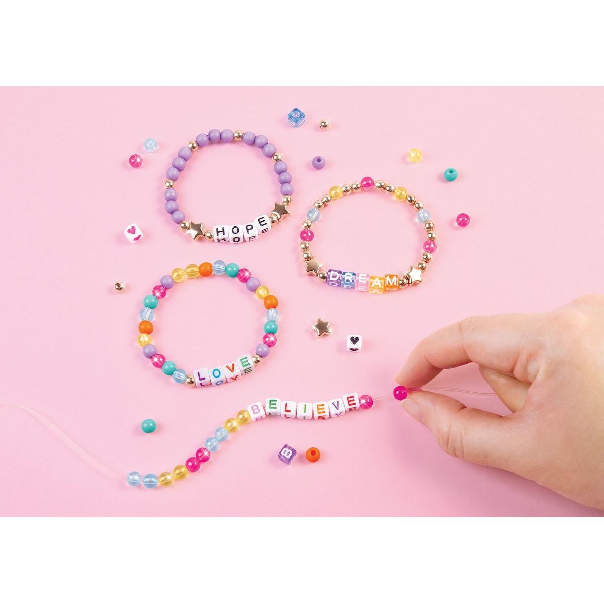 Nejlepší sada náramků přátelství! Použijte více než 1000 různých korálků k vytvoření náramků se zábavnými a inspirativními zprávami. Náramky přátelství jsou velmi trendy a vždy stylové a jsou perfektní kutilskou činností pro mladé kreativce. Obchodujte s přáteli, sdílejte zábavu a šiřte pozitivní zprávy! Tato sada náramků je skvělým nápadem na dárek pro začínající kreativce, ať už k narozeninám, svátku nebo jen tak. Sestavování náramků přátelství rozvíjí jemné motorické dovednosti doplnění a umožňuje jim kreativně se vyjádřit. Tato aktivita je ideální pro děti ve věku 8+ a umožňuje jim být kreativní a prozkoumat svůj jedinečný styl.