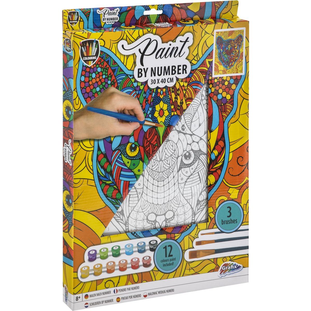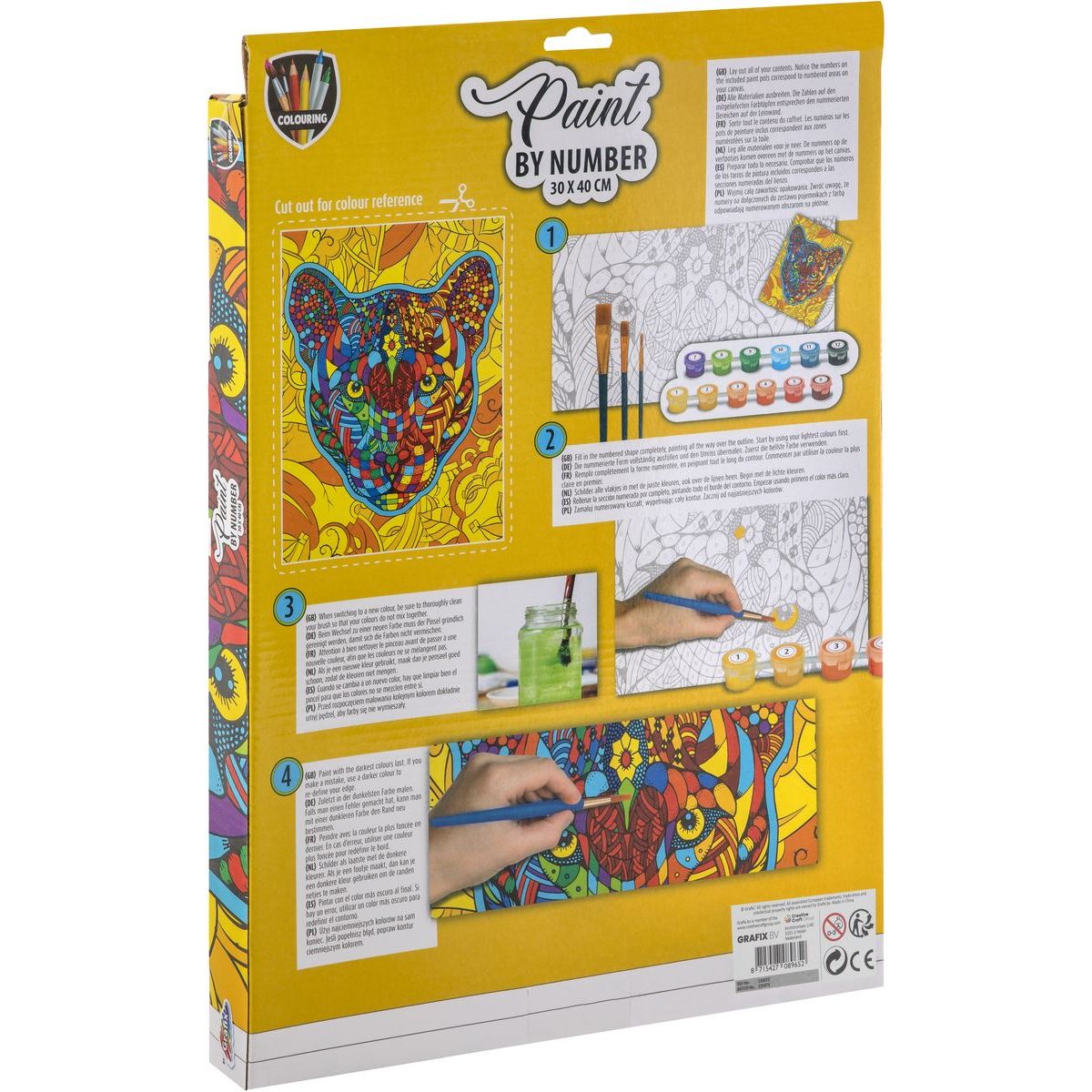 Malování podle čísel na plátno Tygr 30×40 cm – balení obsahuje obrázek vytištěný na bavlněném plátně, 12 barev a 3 ks štětců.