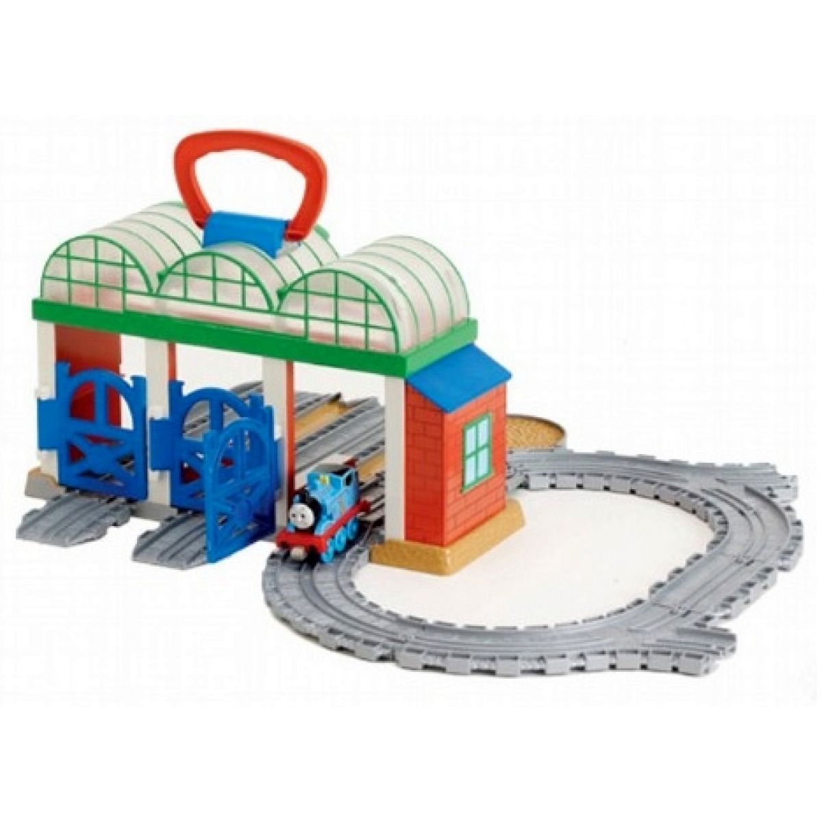 Obsahuje: 1x depo, 1x mašinku Tomáše, 7ks kolejí a 1x závoru