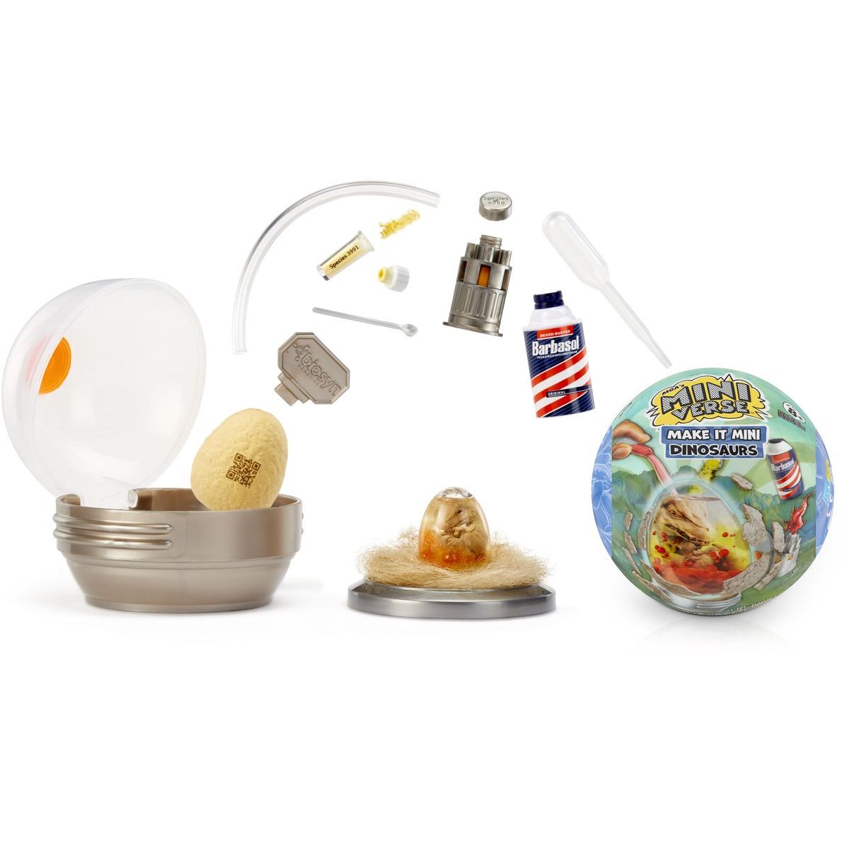 Mini hračky...VELKÁ překvapení! Udělej to! Vystav to! V kouli ve tvaru inkubátoru pro dinosaura najdeš dinosauří DNA a stříkačku. Do dinosauřího vejce, které má QR kód jako ve skutečném filmu, přidej DNA. Pokud máš v balíčku vejce, zatřes s ním, rozbij ho a sleduj, jak vzniká mini dinosaurus. 12 dinosaurů v sérii. Obsah balení: 1 set s inkubátorem pro dinosaura 1 nádobka s práškem 1 nádobka s tekutinou