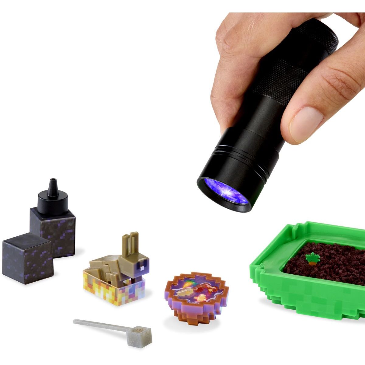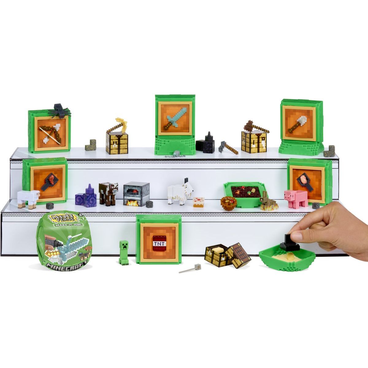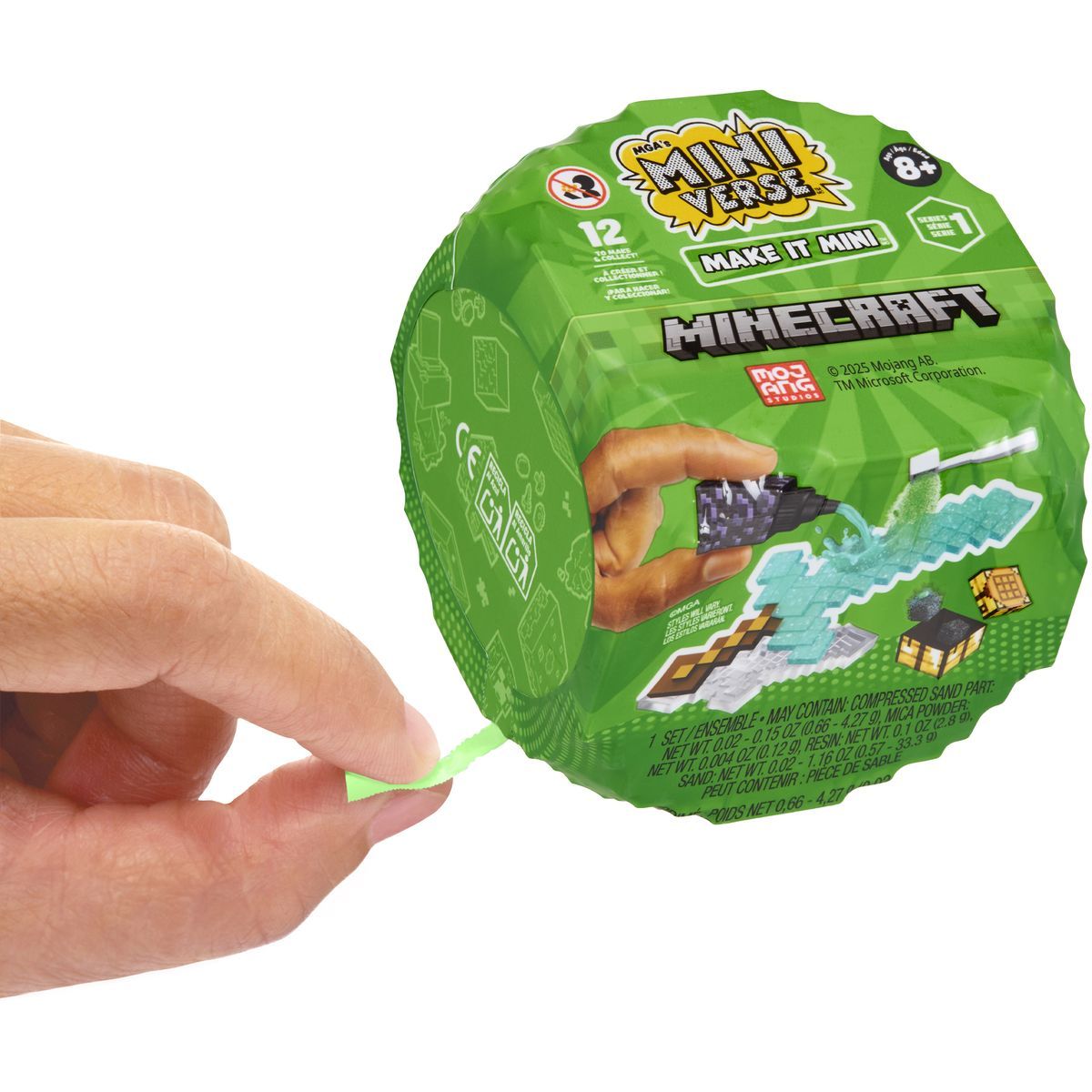 Vytvoř si vlastní svět Minecraft v miniaturách s MGA's Miniverse - Make It Mini Minecraft! Tento unikátní set ti umožní vyrobit detailní a hyperrealistické repliky oblíbených předmětů z hry a filmu Minecraft, jako je dřevěná sekera, diamantový meč nebo prasátko. Stačí použít přiložené materiály, nechat hotovou miniaturu zatuhnout na slunci či pod UV světlem a můžeš ji hrdě vystavit. Každý kus v této sérii je malým mistrovským dílem plným překvapení, které potěší nejen fanoušky Minecraftu, ale i sběratele miniatur. Celkem můžeš sesbírat až 12 různých miniaturních předmětů a oživit tak svůj herní svět v té nejmenší podobě. Užij si tvoření, které rozvíjí šikovnost i fantazii!