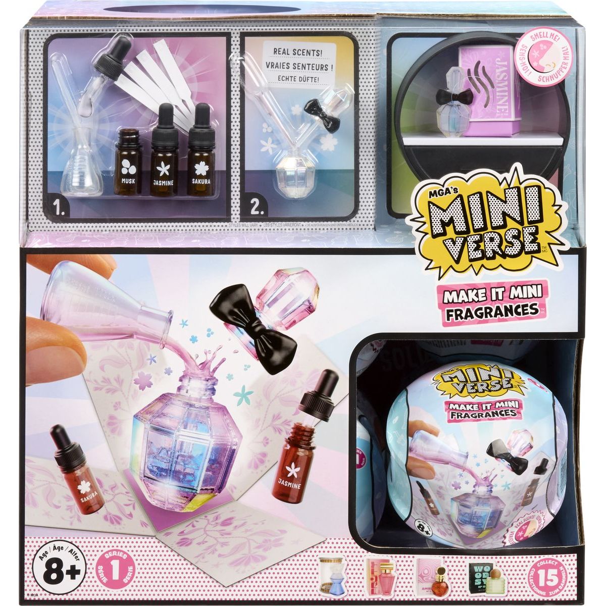Vstup do světa vůní s MGA's Miniverse – Make it Mini Vůně, kde se mini hračky mění ve skutečné umění parfemace! Vyrob si své vlastní unikátní mini vůně kombinací ingrediencí pro vrchní tón, srdce a základ. Každý tón odhaluje jinou fázi vonného zážitku – první okamžiky plné aromat, následované jemným srdcem a nakonec dlouhotrvajícím základem, který dodává hloubku a trvanlivost. Můžeš libovolně kombinovat složky z různých balení a vytvořit tak vůni přesně podle svého gusta.