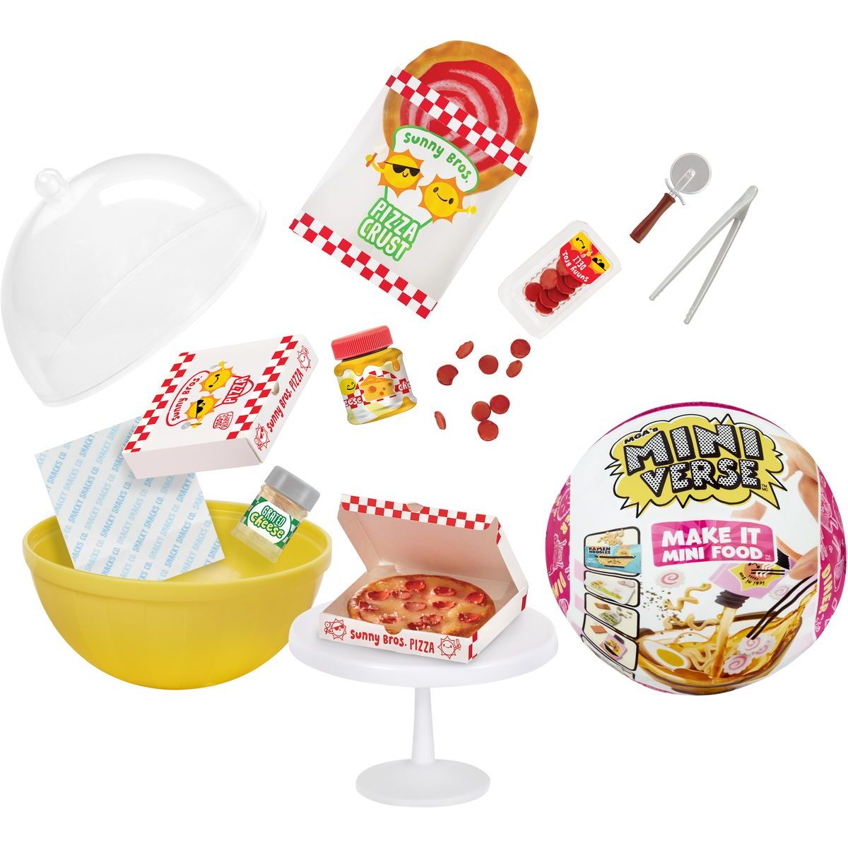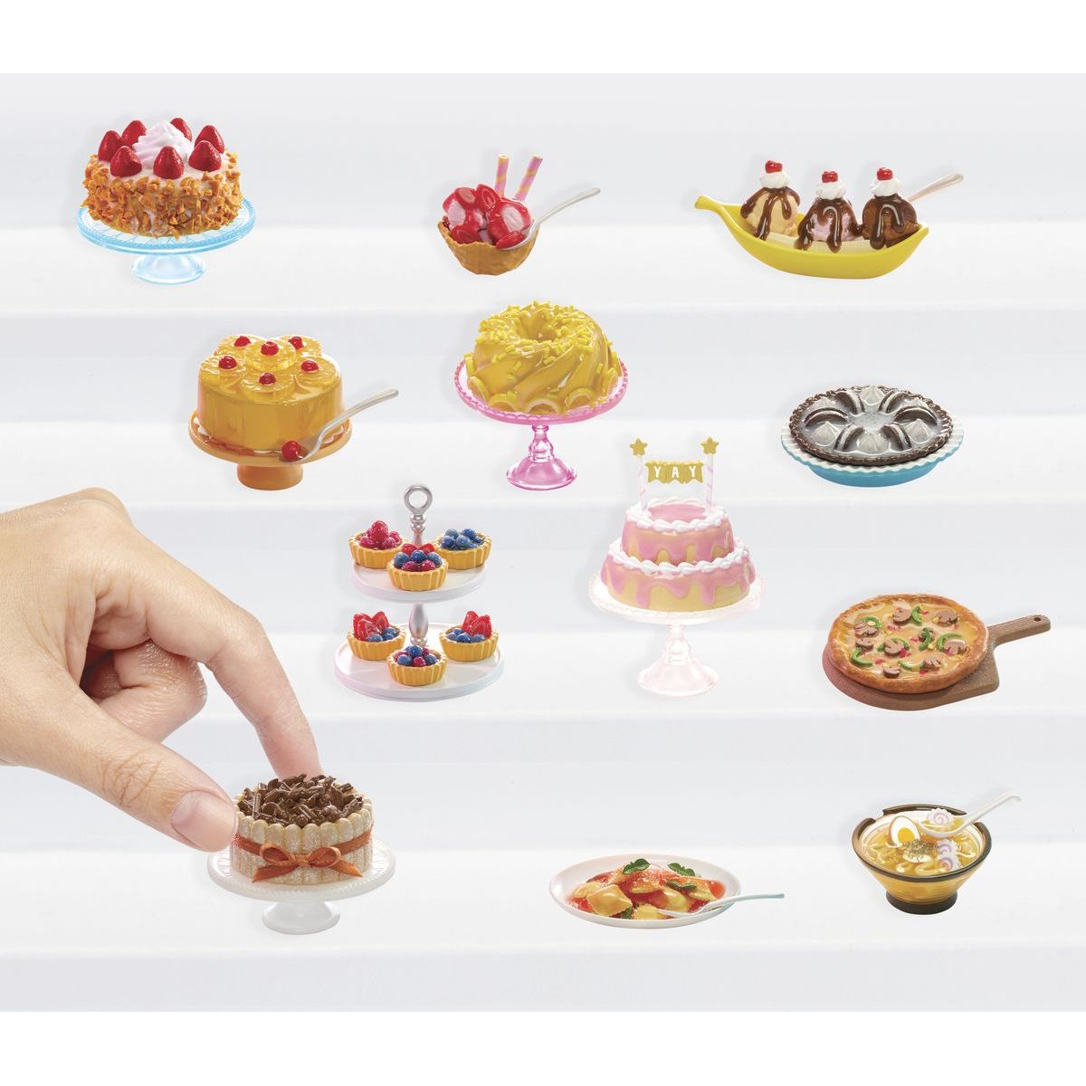 Obsah balení: set na výrobu jídla nebo nápoje, lahvička pryskyřice, papírové doplňky, kuchyňské nádobí, stůl, mini nádobka, pinzeta, sběratelský plakátek