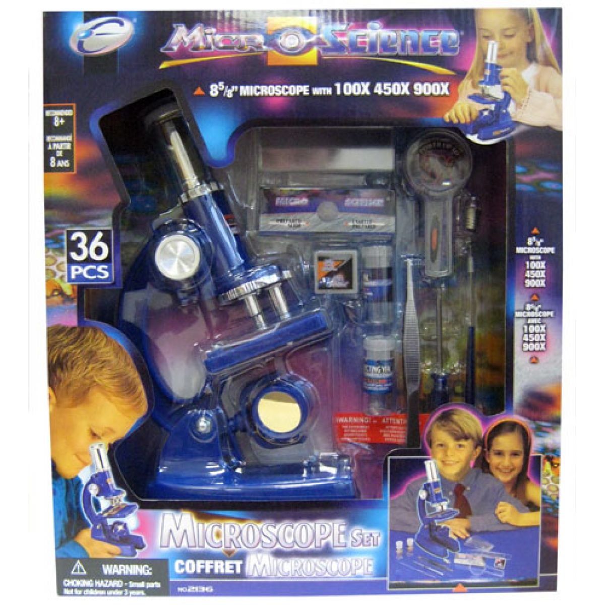 Alltoys Mikroskop sada má max. zvětšení 100x/450x/900x, je určena malým zvědavcům.Sada obsahuje 36 dílů - 1 mikroskop, 1 pinzetu, 1 žárovku, 1 lupu, 1 jehlu, 1 připravený preparát, 12 prázdných sklíček, 5 krycích sklíček, 10 etiket, 2 sběrné ampule, 1 šroubovák, návod. jsou třeba baterie 2x AA, které nejsou součástí balení.