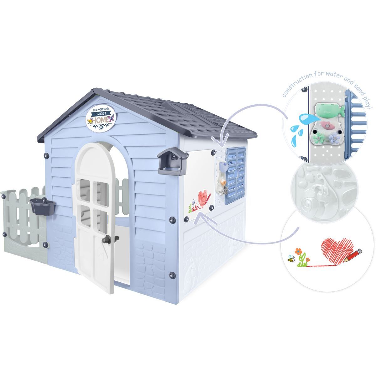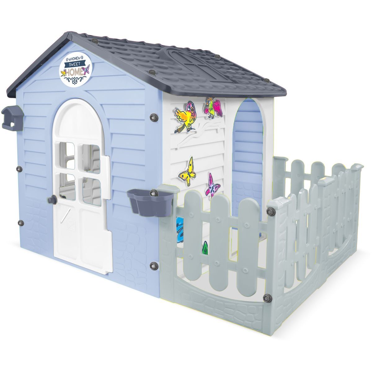 Tento zahradní domek od renomovaného výrobce Mochtoys představuje stabilní a bezpečnou herní sestavu určenou pro exteriérové využití. Konstrukce je vyrobena z vysoce kvalitních plastů, které se vyznačují odolností vůči povětrnostním vlivům a UV záření, čímž je zajištěna dlouhá životnost a stálost barev. Součástí domku je ohraničený prostor s plotem, který rozšiřuje herní plochu a dodává stavbě realistický vzhled. Domek je navržen s ohledem na maximální bezpečnost, neobsahuje ostré hrany a jeho montáž je díky intuitivnímu systému spojů nenáročná. Ideální prvek pro rozvoj sociálních dovedností a kreativní hry na čerstvém vzduchu.