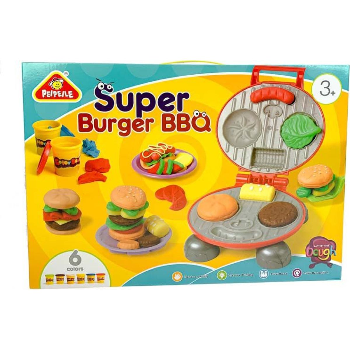 Balení obsahuje: 6x uzavíratelný kelímek s modelovací hmotou, příslušenství, gril.