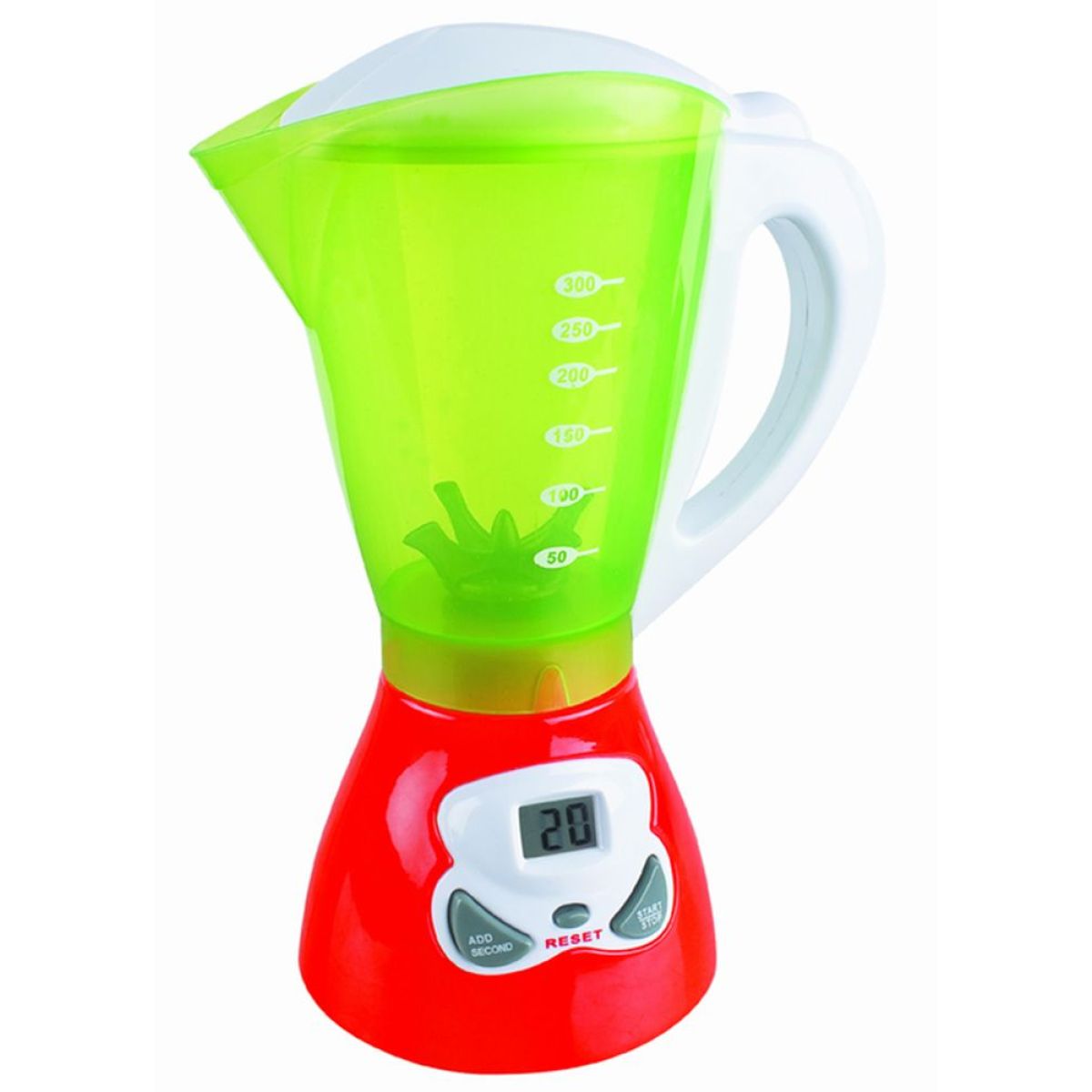 Obsahuje průhlednou nádobu s víkem, otočné prvky a realistický design, který imituje skutečný kuchyňský přístroj.