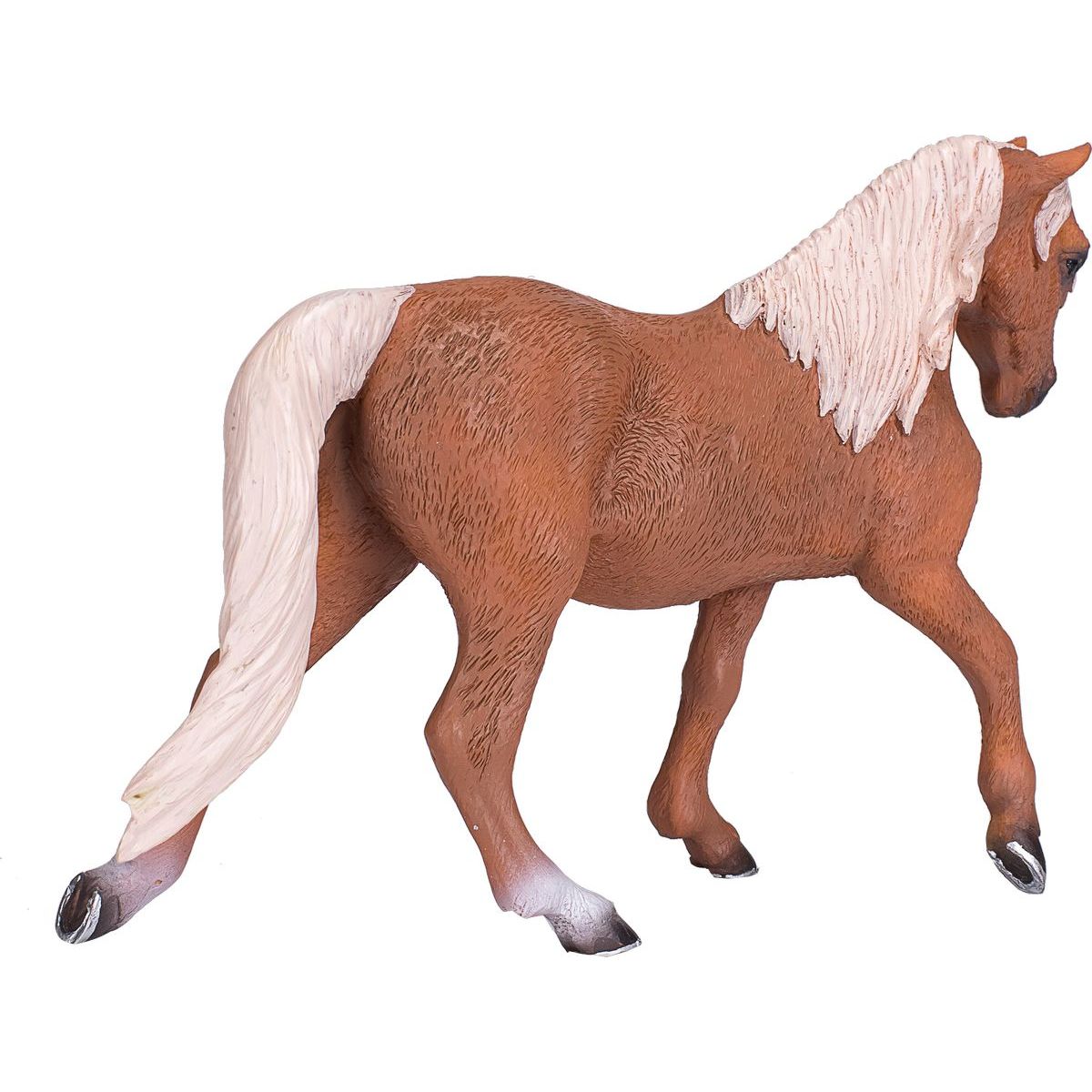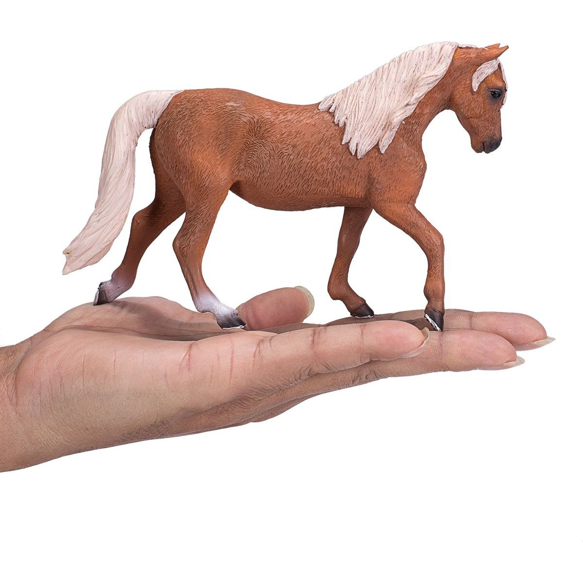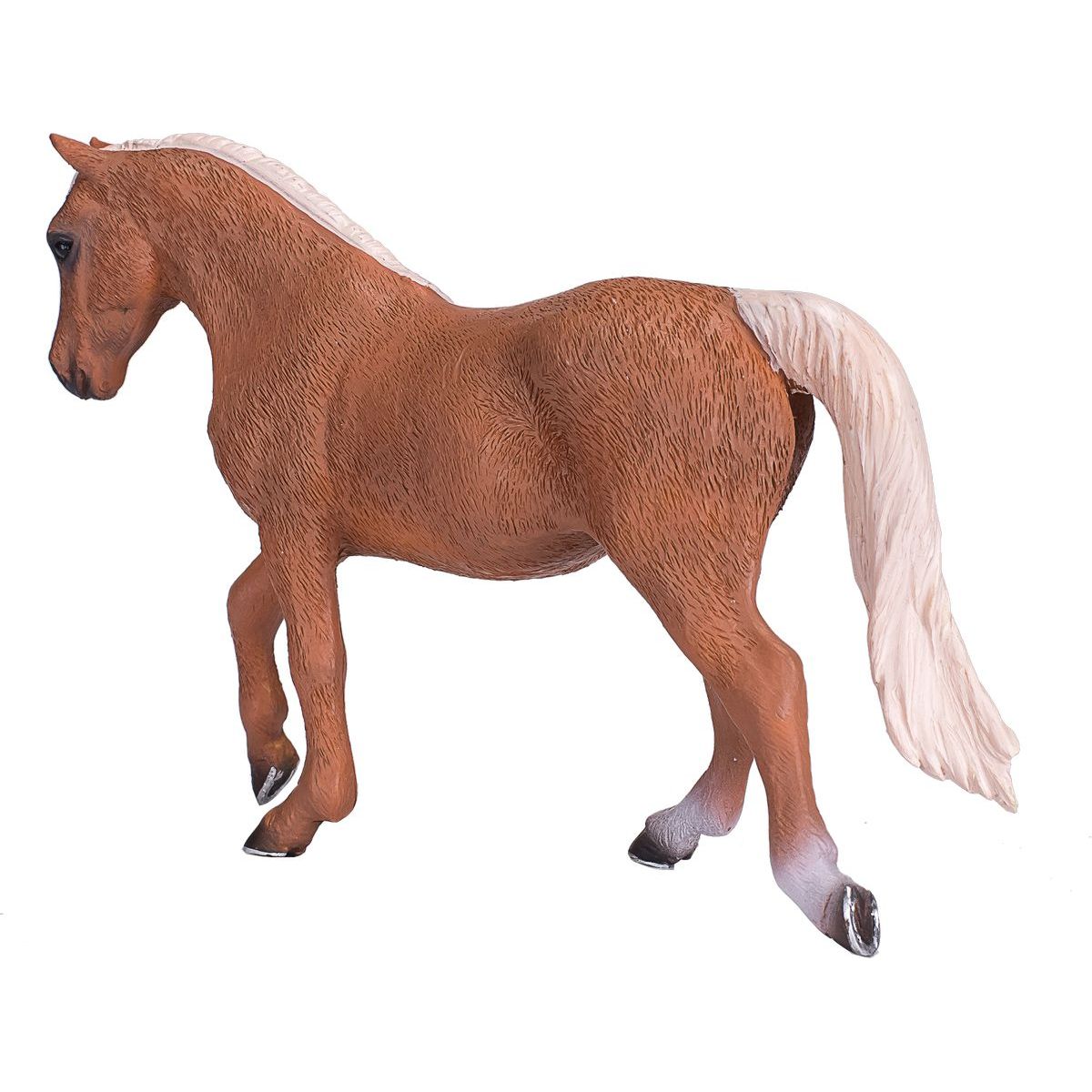 Detailně zpracovaná figurka hřebce palomino morgánského, představujícího jedno z nejvíce uznávaných plemen koní s elegantním vzhledem a silnou stavbou těla. Věrně zachycená jeho typická palomino srst, která se mísí se zlatavými tóny, spolu s výraznými rysy a silnou postavou dělá tuto figurku unikátní.