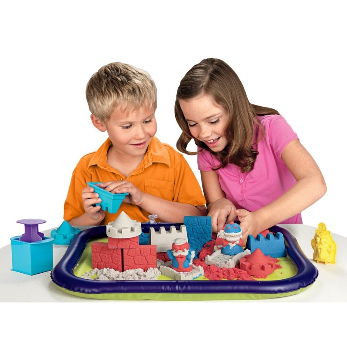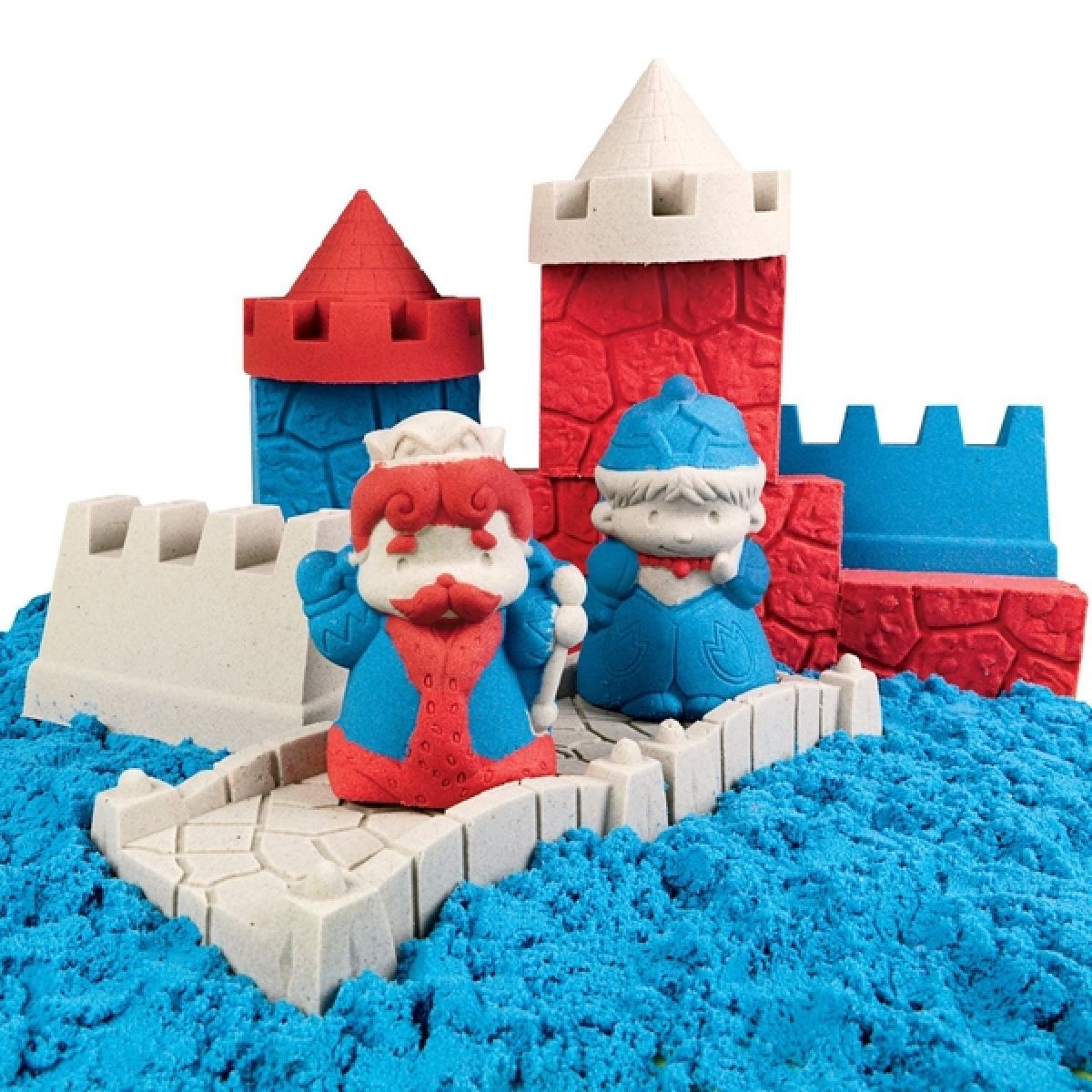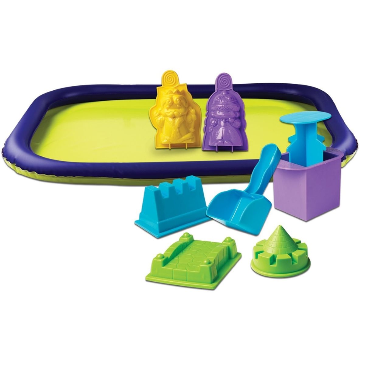 Balení obsahuje hrací podložku s nafukovacím okrajem, 5 formiček, vytlačovací formu na hradby, lopatku a 840g písku v několika barvách.