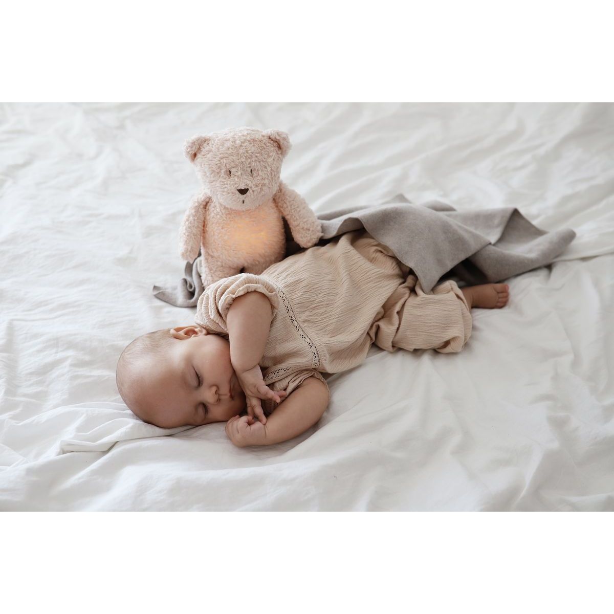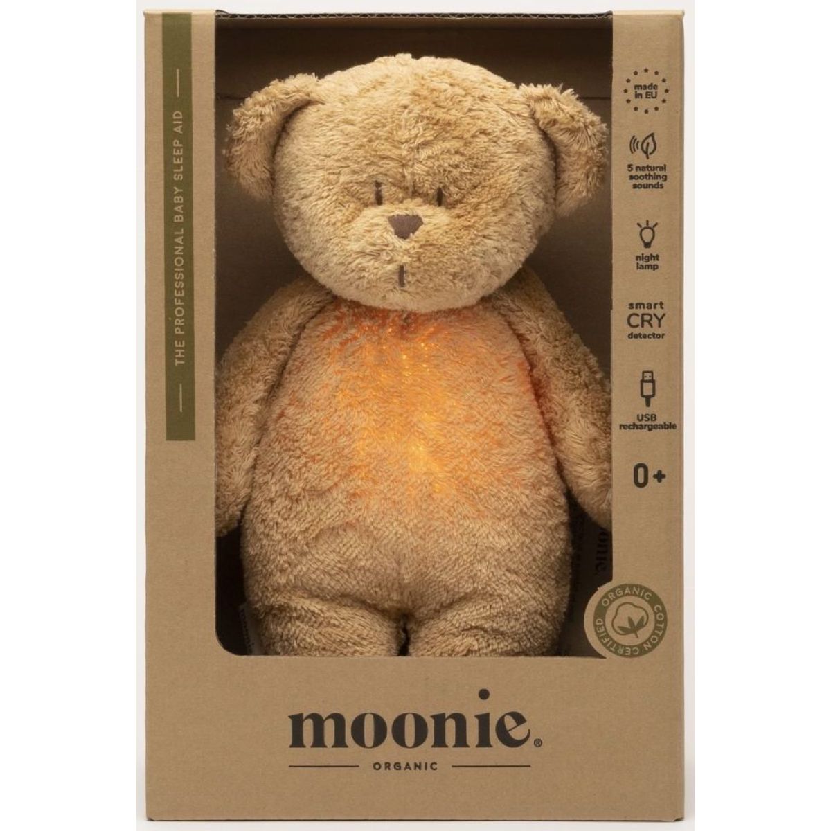 Objevte svět klidu a pohody s Moonie Usínáčkem Medvědem 2.0 Organic Cappuccino, který je ideálním společníkem pro vaše nejmenší. Tento roztomilý medvídek nabízí pět přírodních relaxačních zvuků, včetně tlukotu srdce a šumění mořských vln, které pomáhají miminku snadněji usnout. Bříško medvídka slouží jako noční světlo s výběrem sedmi barev, které vytváří příjemnou atmosféru a pocit bezpečí. Díky inteligentnímu senzoru pláče se zvuk a světlo automaticky aktivují, když dítě začne plakat. Hračka je vyrobena z certifikované organické bavlny a její výplň tvoří recyklovaný materiál, což z ní činí ekologickou volbu. Rozměry 28 x 16 x 10,5 cm zajišťují pohodlné držení a manipulaci. Nabíjení probíhá pomocí USB kabelu, který je součástí balení, a plně nabitá baterie vydrží až 8 hodin nepřetržitého provozu. Věk: 0+ let Rozměry: 28 x 16 x 10,5 cm Baterie: dobíjecí USB Zvuky: 5 přírodních relaxačních zvuků, ukolébavky, možnost nahrání hlasu Světlo: noční světlo s 7 barvami Senzor: inteligentní senzor pláče