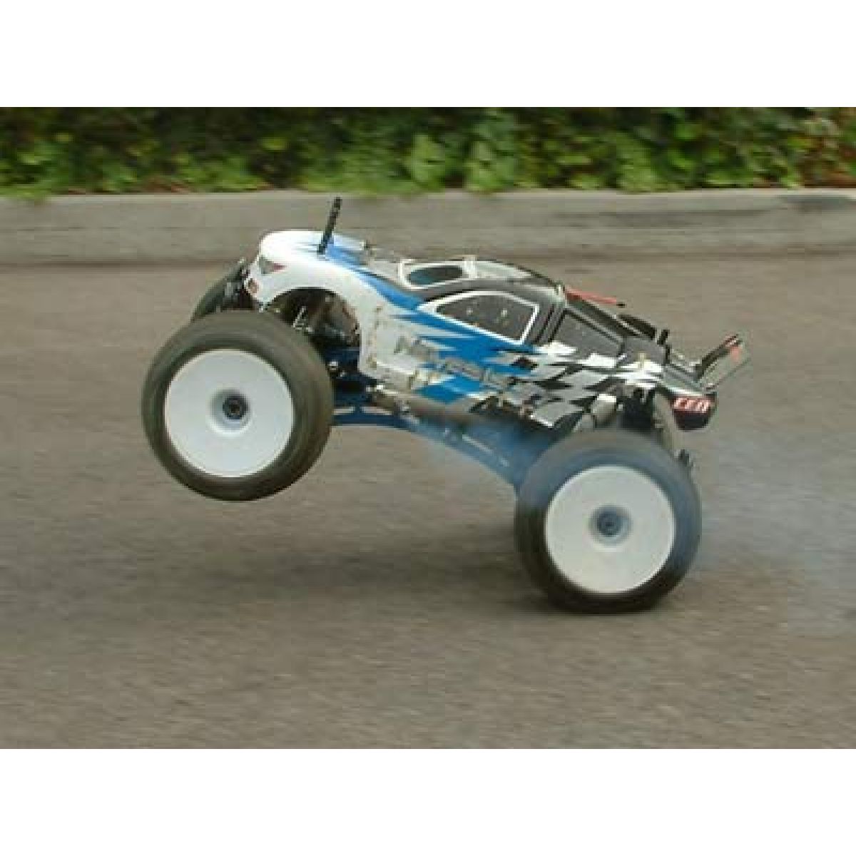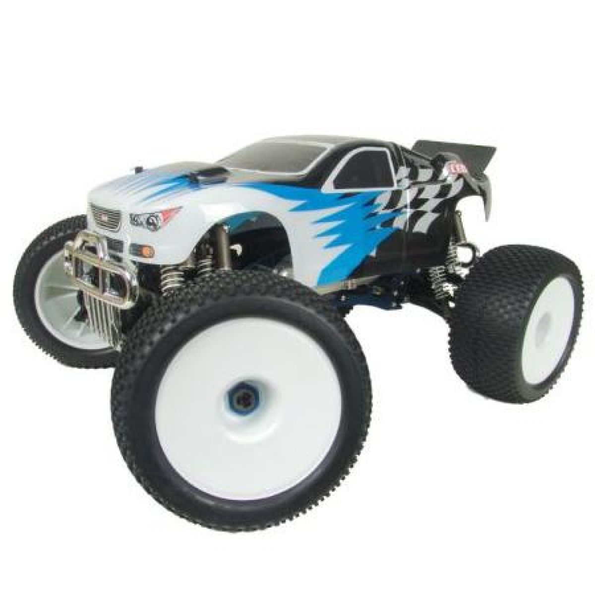 Sestavený 4WD závodní Monster Truck Nemesis nové generace. 2-stupňová automatická převodovka se zpátečkou, šasi z Ergalu, 8 hydraulických tlumičů, obrovská plná buggy kola s nízkoprofilovými pneumatikami o průměru 190 mm, závodní diferenciály s kovovým tělem, výkonný motor 7,5 ccm. Model dosahuje rychlost přes 70 km/h. Včetně 10kg serv, fail-safe a 3-kanálové počitačové pistolové RC soupravy SANWA MX-3.