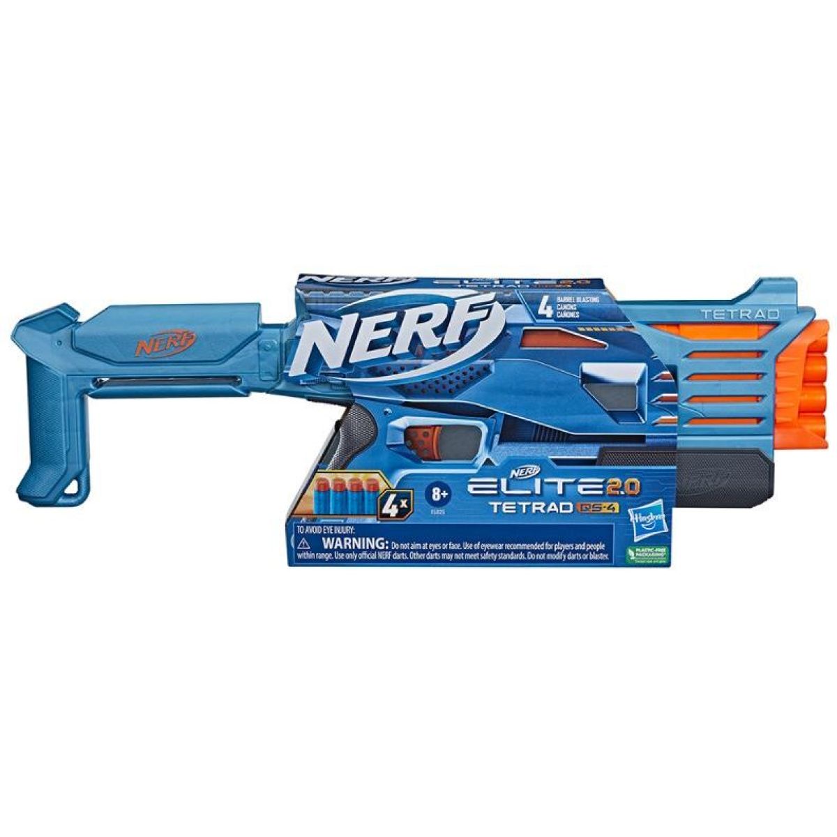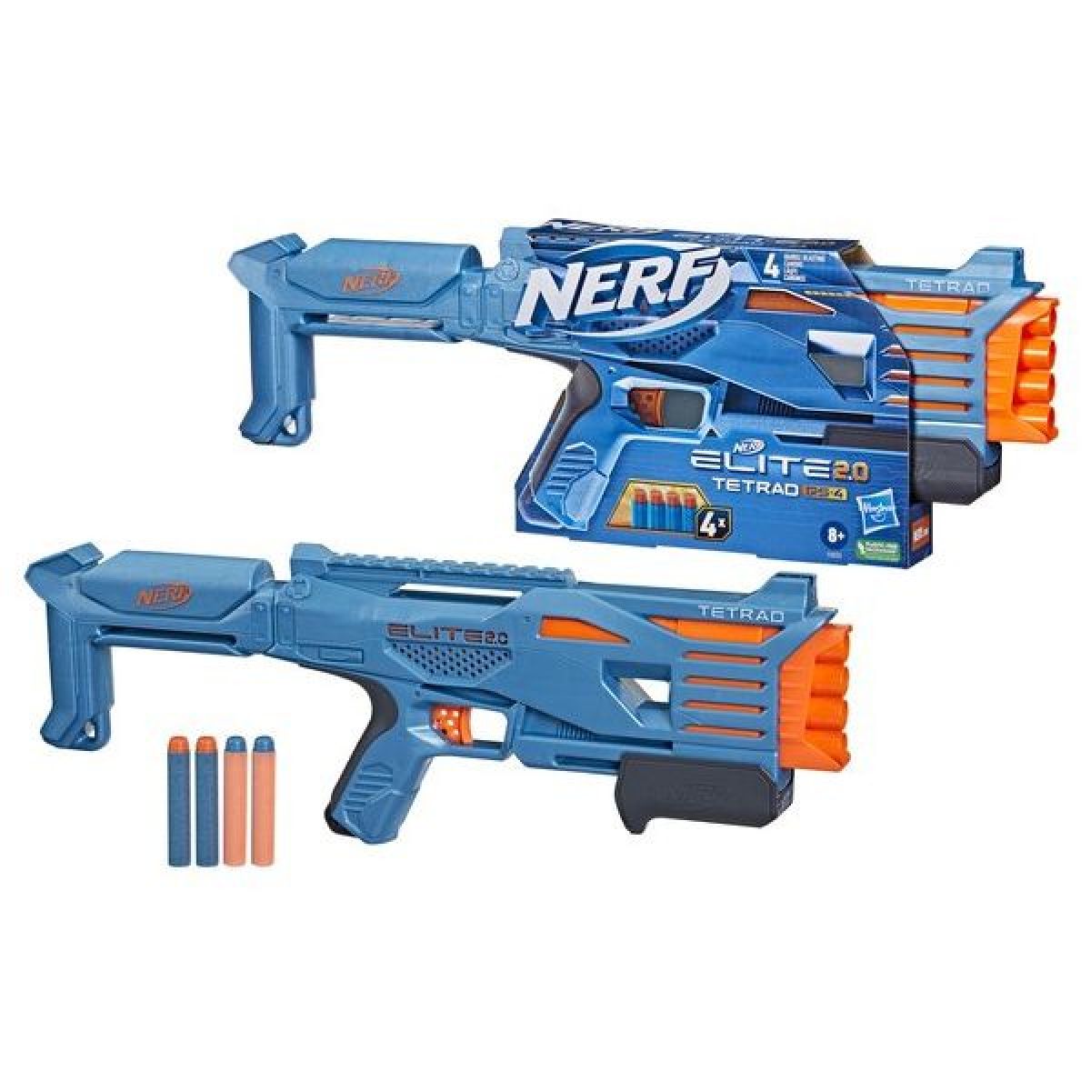 Nerf Elite 2.0 Tetrad QS-4 je kompaktní pěnový blaster určený pro dynamickou akční hru. Díky hlavni se čtyřmi komorami umožňuje vystřelit až čtyři šipky po sobě bez nutnosti okamžitého přebíjení. Ovládání je rychlé a intuitivní – pomocí posuvné rukojeti se blaster ručně natáhne, poté stačí zamířit a stisknout spoušť.