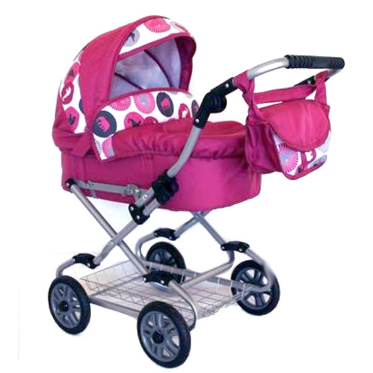 Moderní a lehký kočárek pro panenky s klasickou houpací kovovou konstrukcí.