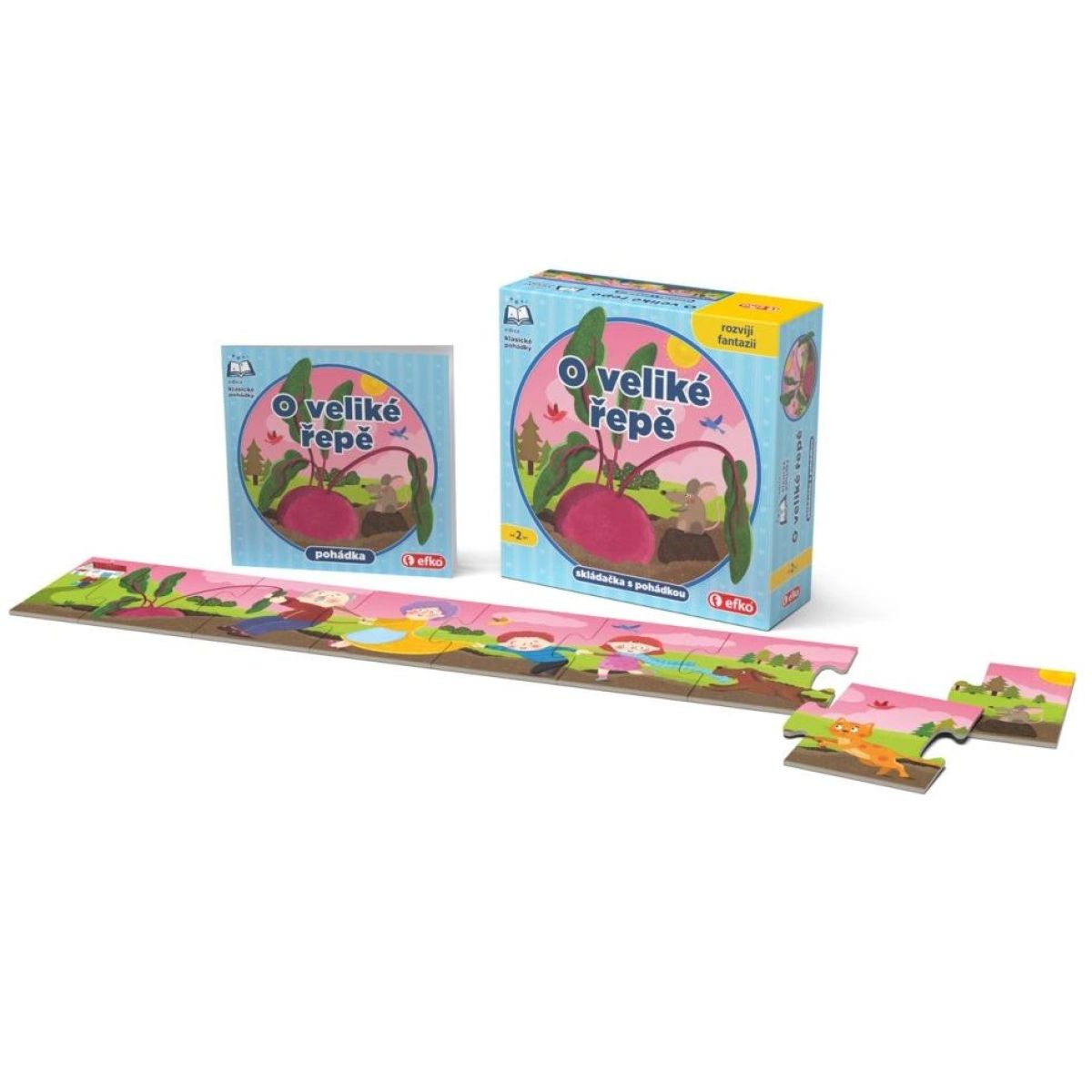 Podpořte rozvoj jemné motoriky, logického myšlení a slovní zásoby dětí se skládačkou O veliké řepě od značky Efko. Děti mají za úkol správně sestavit obrázek celé pohádky z 9 pevných dílků, čímž rozvíjejí svou představivost, trpělivost a schopnost soustředit se.