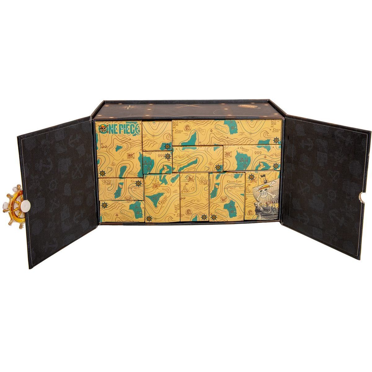 One Piece Adventní kalendář 2025 Premium nabízí jedinečnou kolekci 24 tematických překvapení inspirovaných legendárním světem pirátů z anime a mangy One Piece.