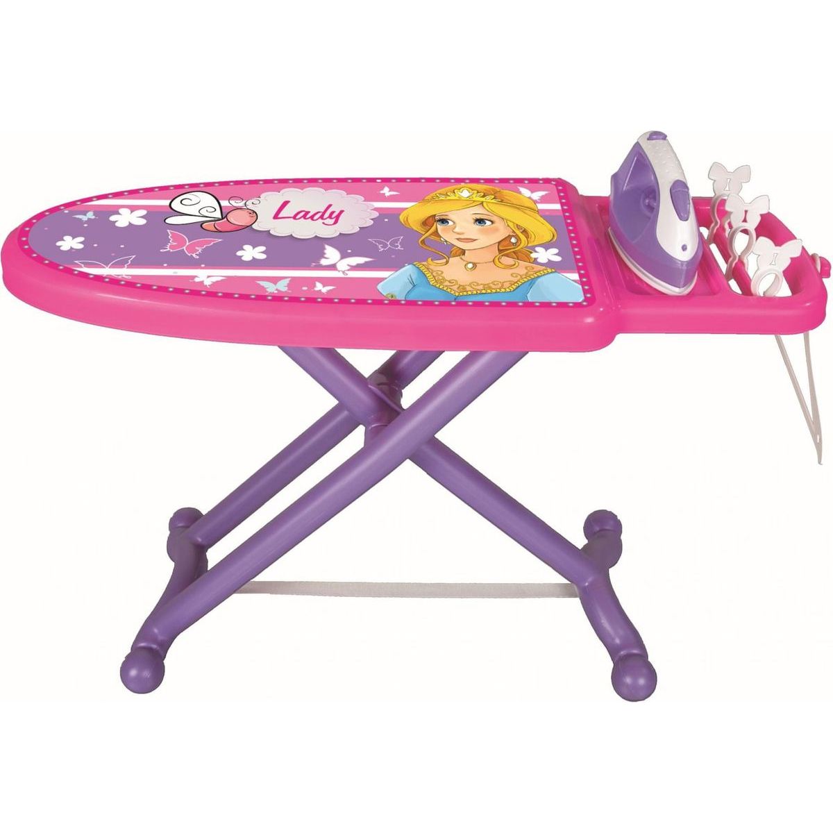 Balení obsahuje: žehlící prkno, žehličku, ramínko a 3 klipy.
