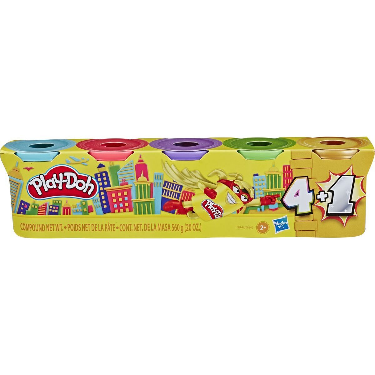 Klasické balení 4 kelímků hmoty Play-Doh je nyní obohaceno o 1 exkluzivní novinku ve zlaté nebo stříbrné barvě ve formě extra kelímku v balení.