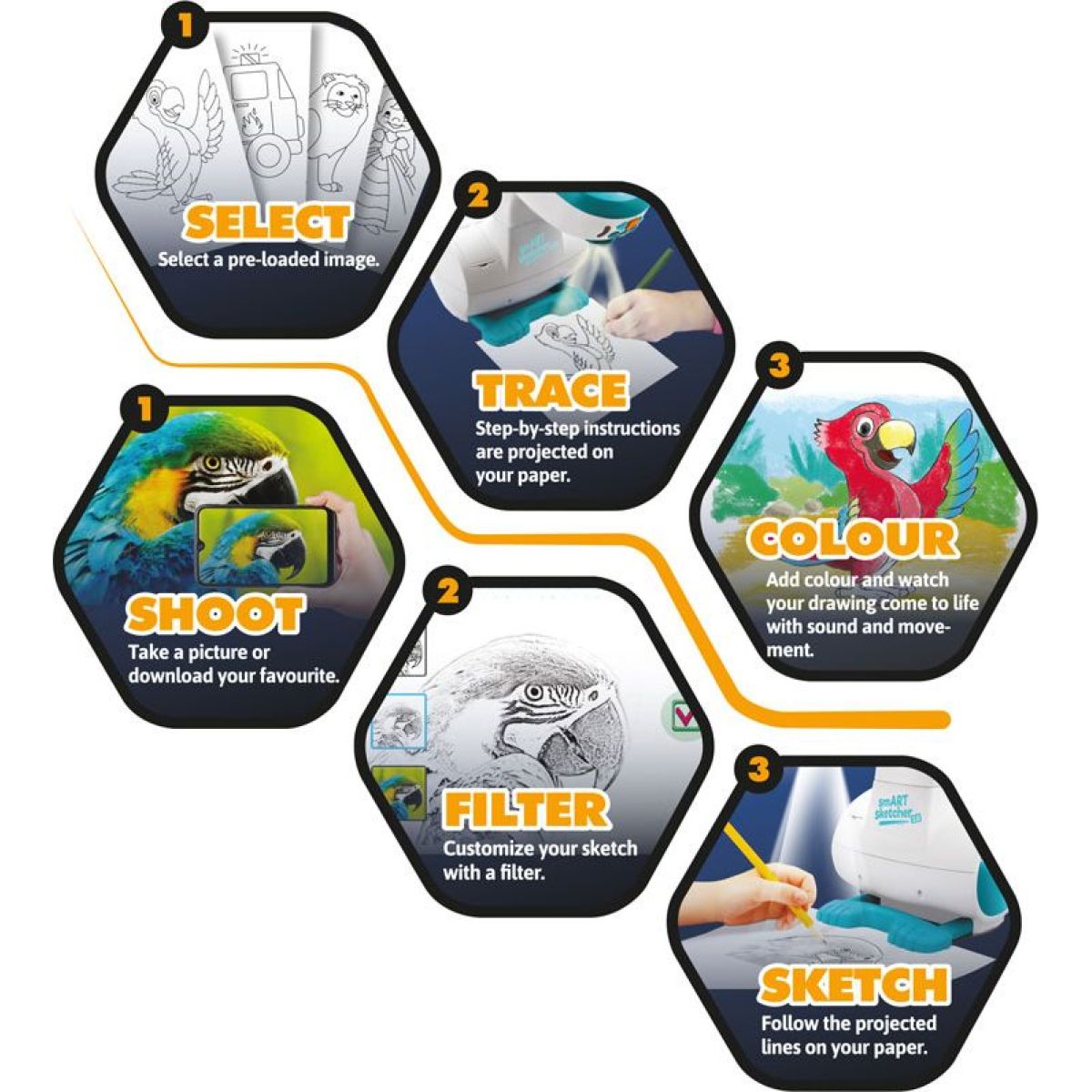 Proměň každou fotografii v kresbu SMART Sketcher. Kreslící projektor Smart a proprietární aplikace ukazuje dětem, jak kreslit a psát jako profesionál pomocí oblíbených fotografií, jak se naučit kreslit obrázky a obsah podle osnov.
