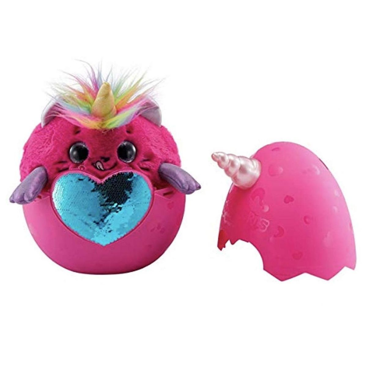 Vajíčko s růžovým rohem obsahuje Kittycorns se jmény Snapcat a Gigi.