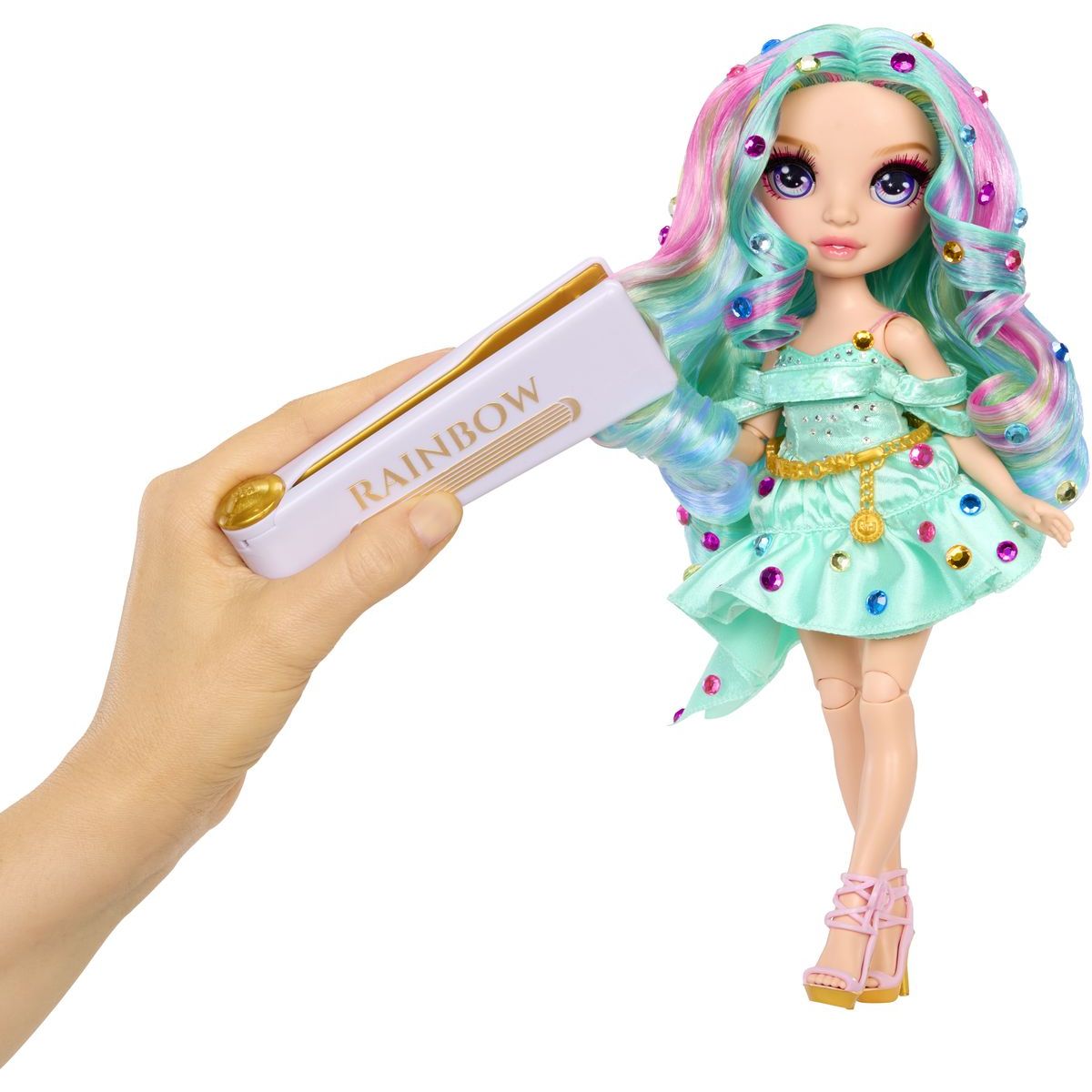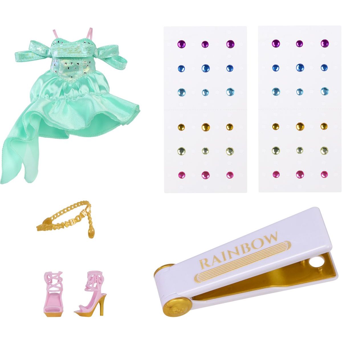 Vstupte do světa duhové módy s panenkou Rainbow High Be Dazzling Fashion Celine Turquoise, která přináší nejen styl, ale i možnost vyjádřit svou kreativitu pomocí třpytivých krystalů. Tato panenka s pohyblivými klouby a dlouhými česatelnými vlasy je připravena stát se středem pozornosti díky svému jedinečnému outfitu a zářivým duhovým kamínkům. Pomocí speciálního krimpovacího nástroje můžeš ozdobit její vlasy i oblečení, nebo vyzkoušet třpytky i na sobě a vytvořit tak vlastní oslnivé módní kreace. Pro všechny malé tvůrce módy od 4 let je tato panenka ideálním společníkem pro hodiny zábavy a sebevyjádření.