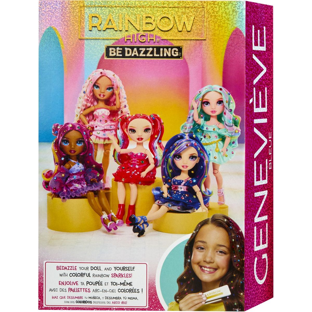 Vstupte do světa duhové módy s panenkou Genevieve Bleue z kolekce Rainbow High Be Dazzling Fashion. Tato stylová panenka se pyšní pohyblivými klouby a dlouhými česatelnými vlasy, které můžete ozdobit zářivými krystalovými třpytkami. Pomocí speciálního krimpovacího nástroje snadno připevníte třpytky na vlasy i outfit, čímž vytvoříte jedinečný módní vzhled plný barev a lesku. Každá panenka z této řady vyjadřuje jedinečnost a kreativitu, což podporuje dětskou fantazii a sebevyjádření v oblasti módy. Přidejte do své sbírky tuto úchvatnou postavu, která je připravena zazářit ve vašich příbězích i hrách! Užijte si nekonečné možnosti kombinací a nechte svou představivost rozkvést s každým detailem této panenky.