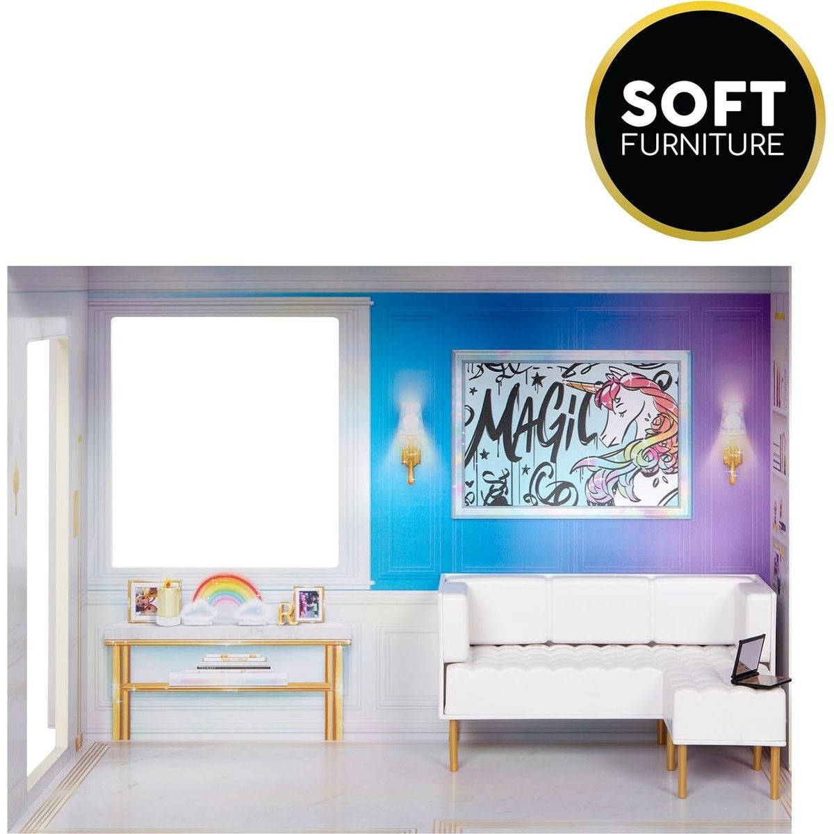 V moderních a barevných pokojích mohou Rainbow High panenky relaxovat, společně vařit a jíst nebo se svézt výtahem.