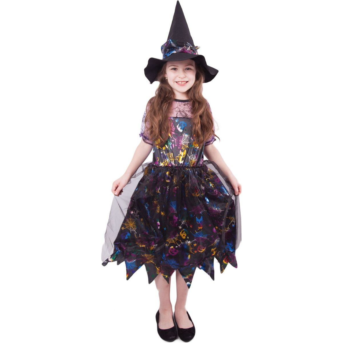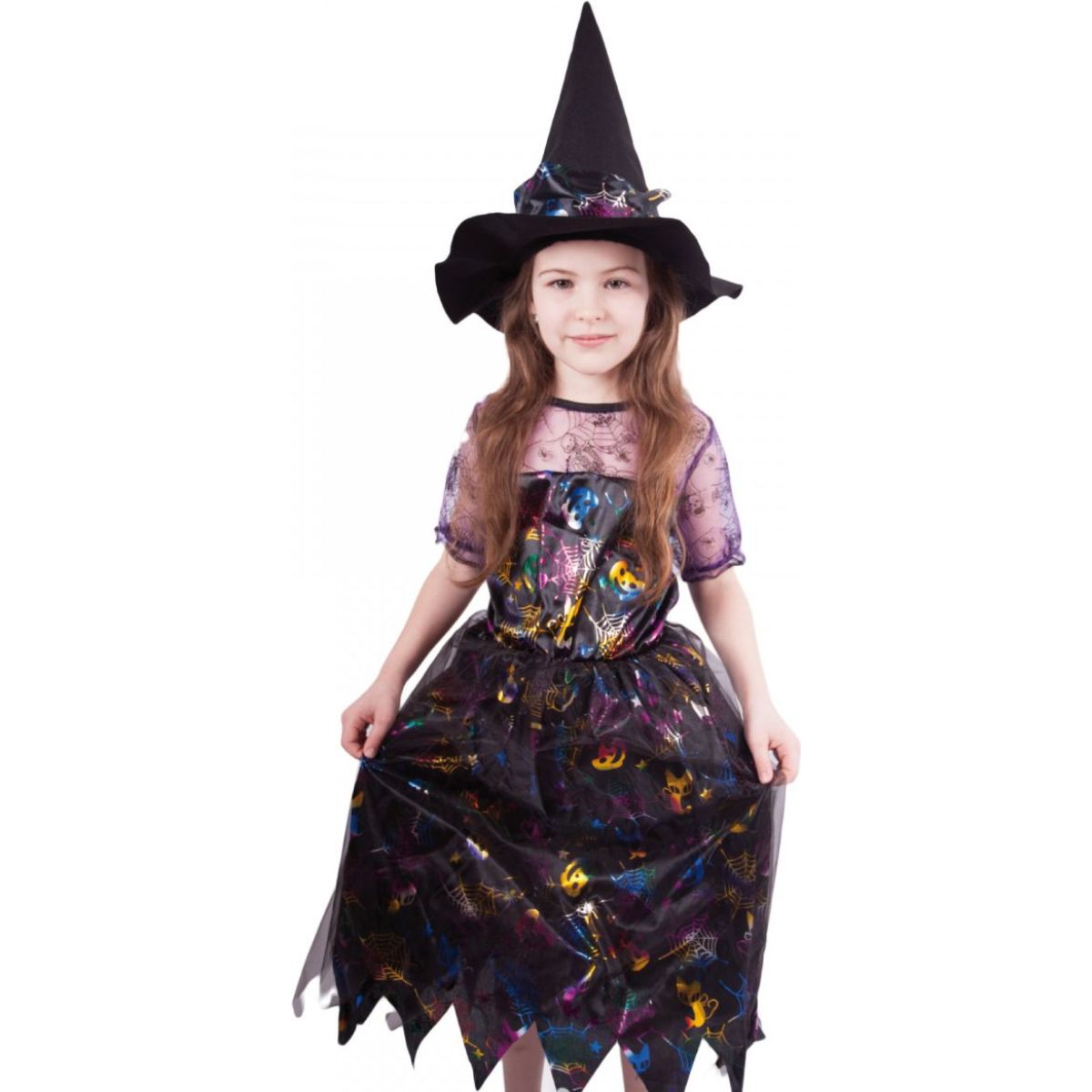 Součástí kostýmu je perfektně sladěný čarodějnický klobouk. S tímto úchvatným kostýmem se zaručeně staneš hvězdou karnevalu i Halloweenu!