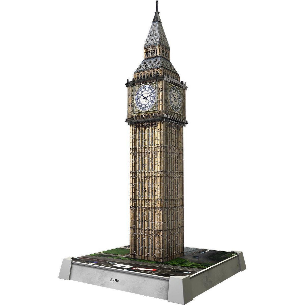 3D puzzle Ravensburger Iconics: Big Ben (Noční edice) představuje realistický model slavné londýnské hodinové věže.