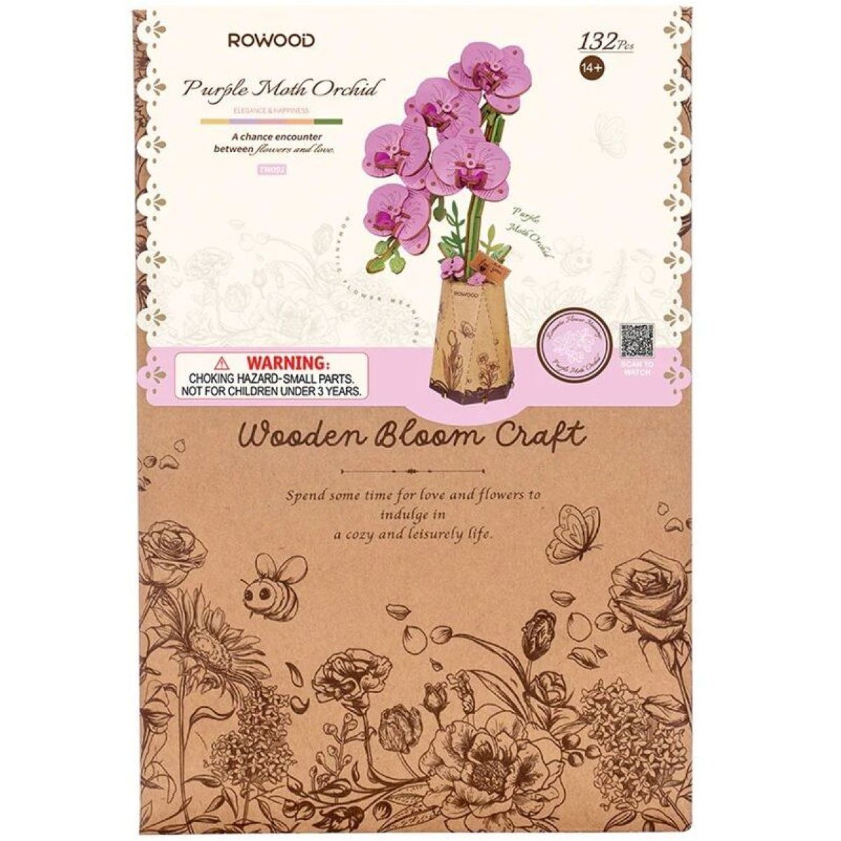 RoboTime 3D dřevěná skládačka Fialová orchidej