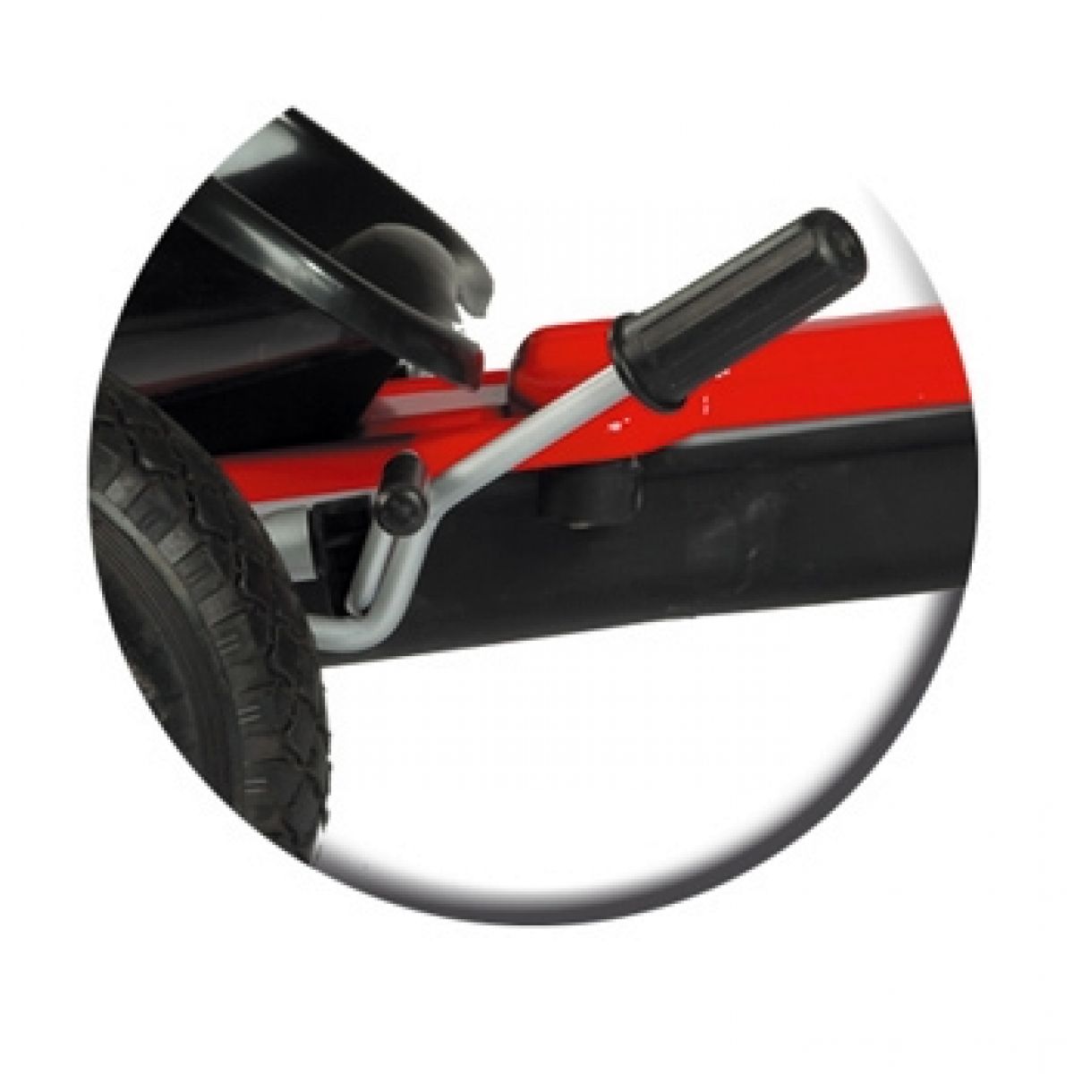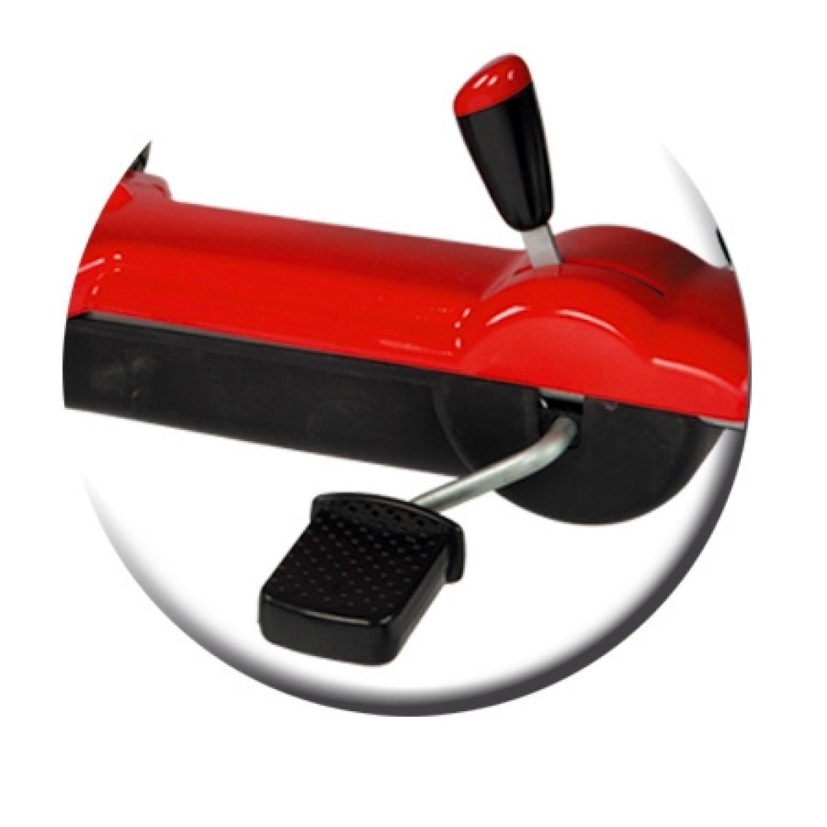 Šlapací čtyřkolka s pevným kovovým rámem a ruční převodovkou (2 převody).