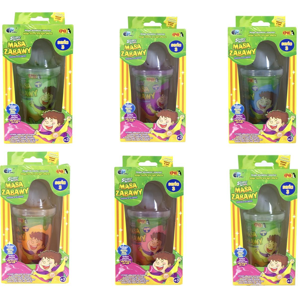 Užijte si bezva zábavu s tímto slizem. Můžete ho natahovat, roztahovat do tenké blány, mačkat nebo vytvářet legrační prdivé zvuky. Pokud do něj vložíte kuličku, která je součástí balení, začne kulička blikat a vydávat zvuky.