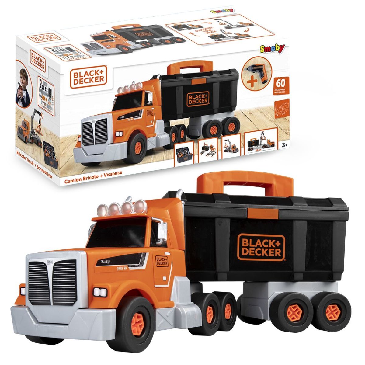 Objevte svět zábavy s kamionem Smoby B&D v licenci Black&Decker, který nabízí nejen realistický vzhled, ale i praktický přívěs sloužící jako box s držadlem na nářadí a malou vrtačkou. Tento kamion je vybaven sadou nářadí obsahující šroubovák, klíče, šroubky, matice a další příslušenství, celkem cca 60 kusů, které umožňují spoustu stavebních možností, zejména konstrukci jeřábu. S délkou 43 cm je ideální pro malé stavitele od 3 let, kteří si rádi hrají a rozvíjejí své dovednosti. Kamion Smoby B&D je skvělou volbou pro všechny, kdo hledají kvalitní a zábavnou hračku s licencí známé značky Black&Decker.