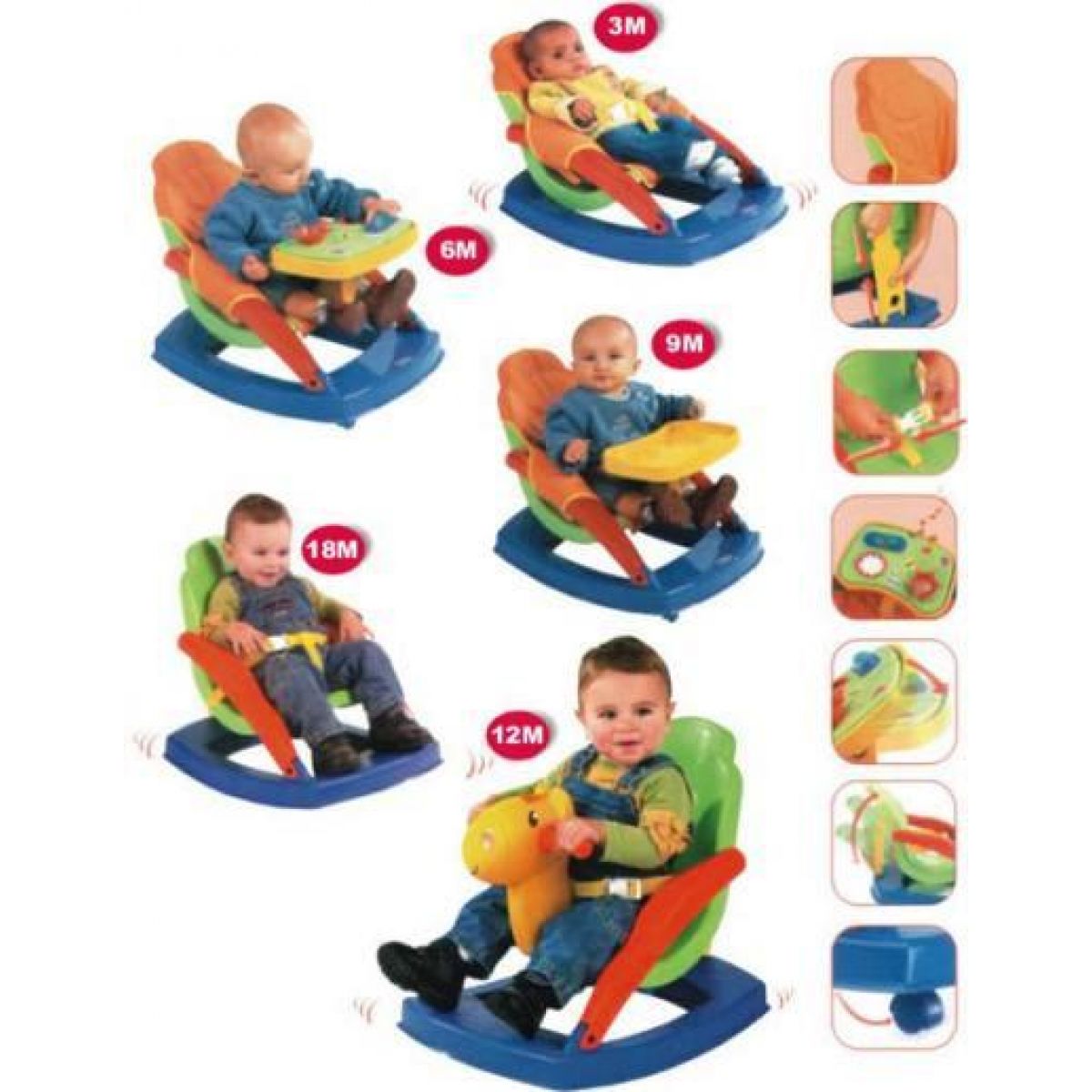 Je určen miminkům od 3 měsíců, slouží jako lehátko, pro miminka od 6 měsíců jako sedátko s hrací deskou, pro děti od 9 měsíců jako jídelní židlička, pro děti od 1 roku jako houpací koník a pro děti větší jako sedátko.
