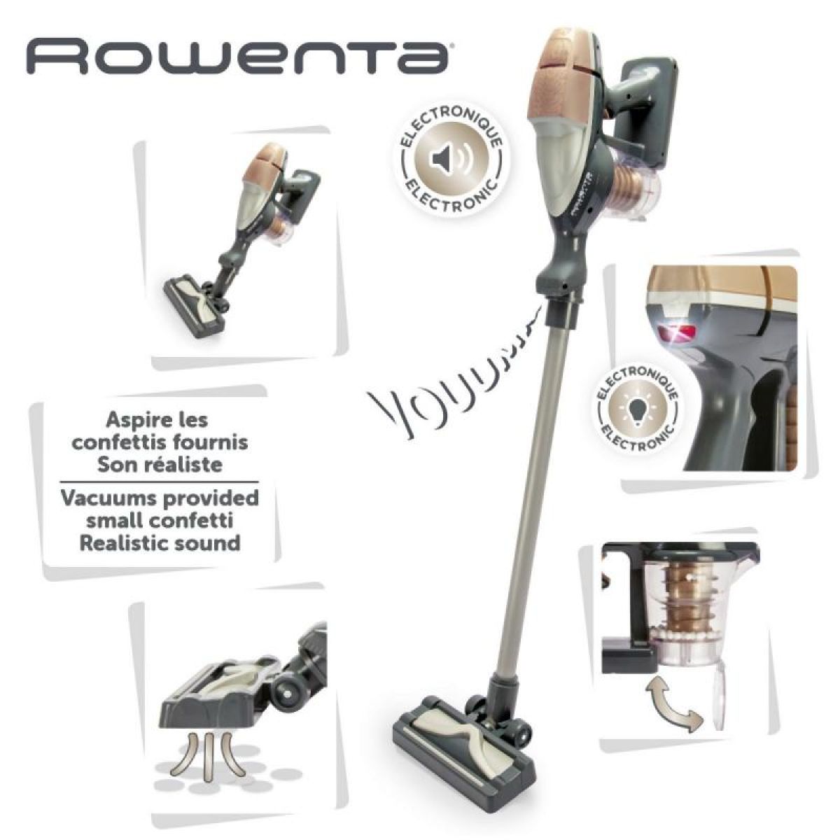 Moderní dětský tyčový vysavač Smoby Rowenta Air Force 360° přináší realistický zážitek z úklidu v originálním designu skutečného spotřebiče značky Rowenta.