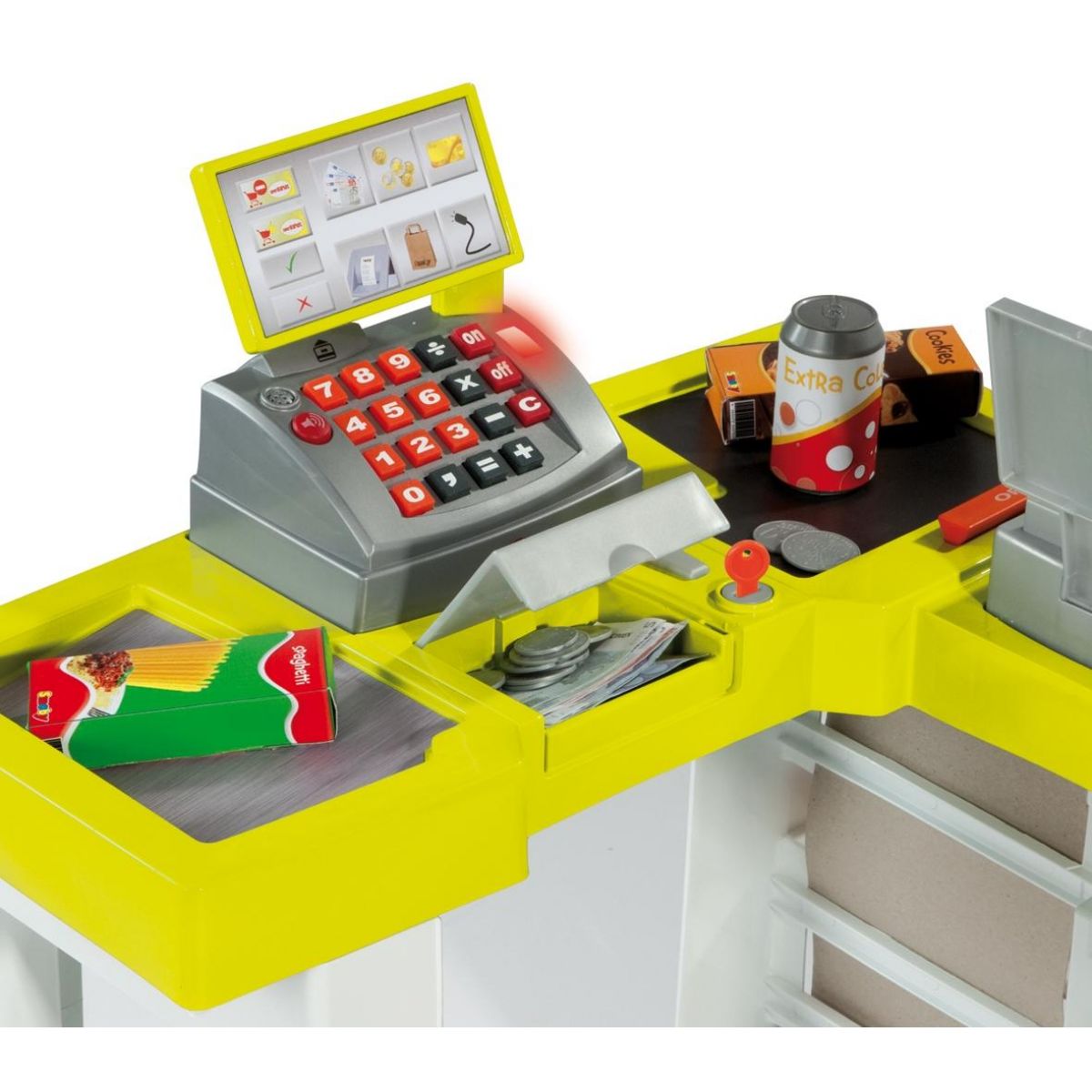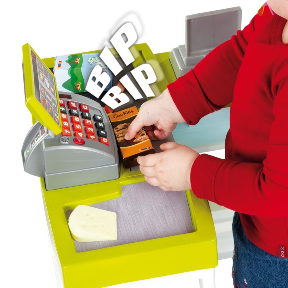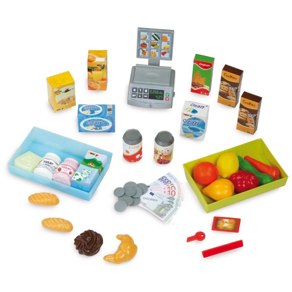 Supermarket s novými funkcemi! Elektronická pokladna se zvuky a světly a funkčním skener, před který stačí umístit zboží pro načtení ceny, jako v opravdové prodejně! Nechybí ani váha na ovoce a zeleninu.