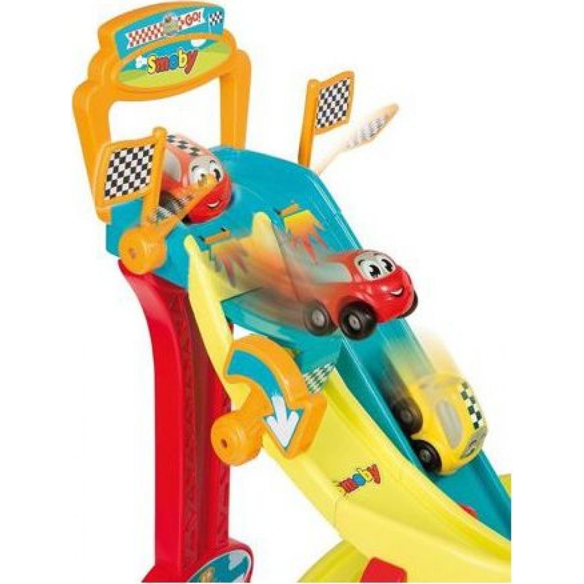 Jedno autíčko se položí na spodní dráhu a vyletí stisknutím tlačítka a druhé autíčko se vystřelí ve vrchní části, rychle přejede velkou zatáčkou a narazí do překážky ve spodní části nebo se spustí po prudkém spádu a projde smyčkou.