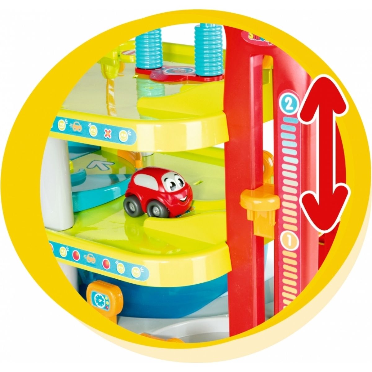 Na třech patrech najdete myčku, čerpací i servisní stanici, manuálně ovládaný výtah, tajnou skrýš i úložný box pro autíčka.