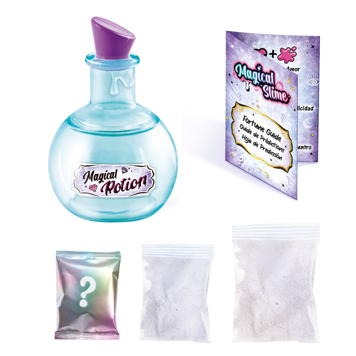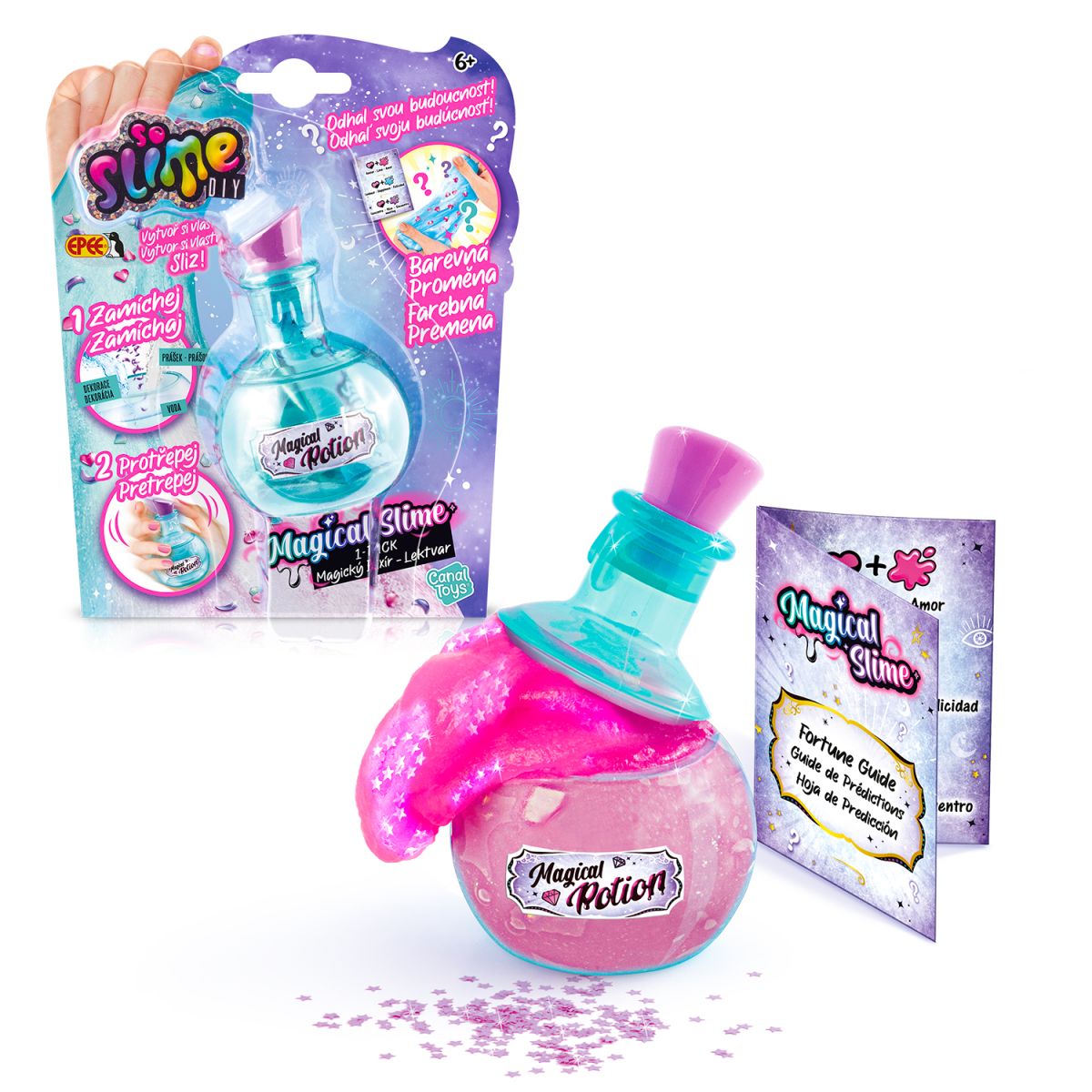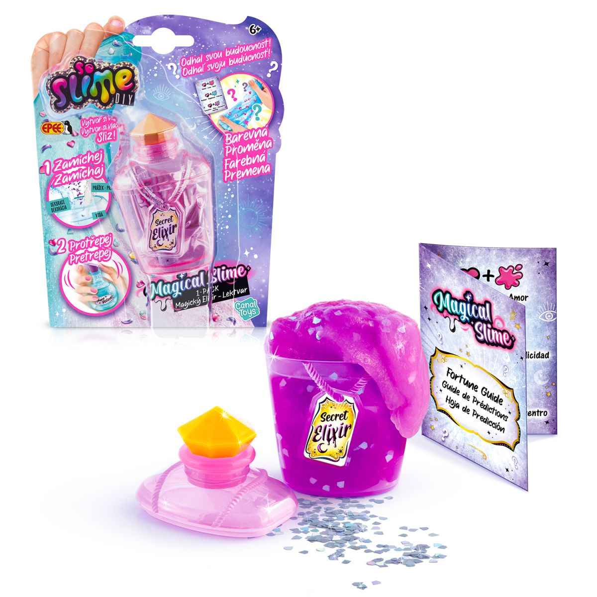 Objevte svět zábavy s So Slime Magickým elixírem – lektvarem, který zabaví tvořivé ruce a odhalí tajemství budoucnosti. Tento unikátní set umožňuje smíchat prášek magického slizu s vodou a přidat speciální přísady, které podle barvy slizu odhalí vaši budoucnost. Součástí balení je nádoba, sliz, návod a karta předpovědí. Ideální pro děti od 6 let, které rády experimentují a objevují nové zážitky. Věk: 6+; Materiál: Ostatní; Bez baterií.