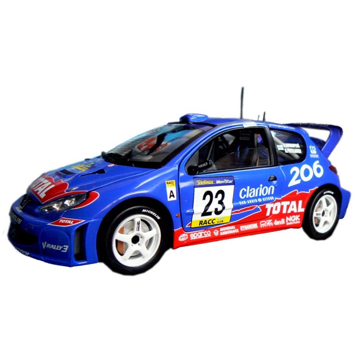Kovový model Peugeot 206 WRC v měřítku 1:18.