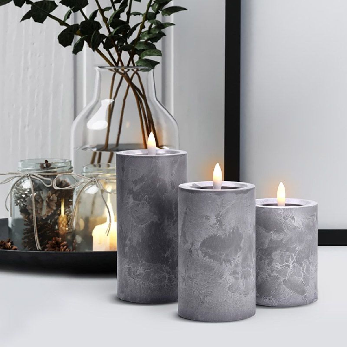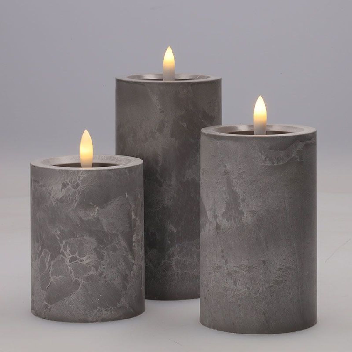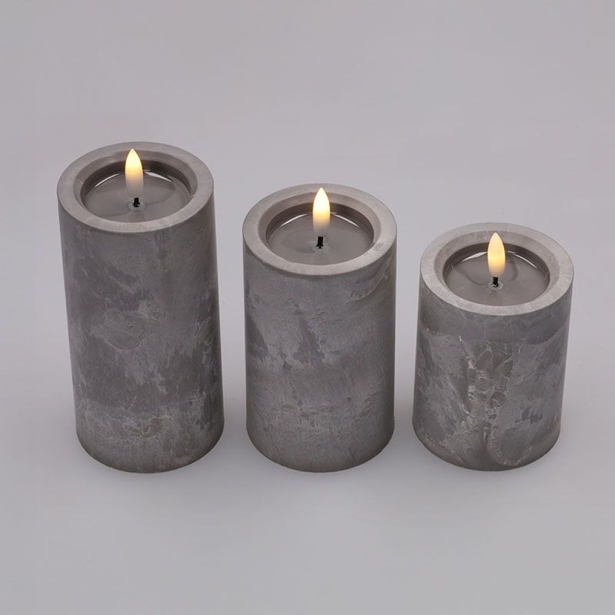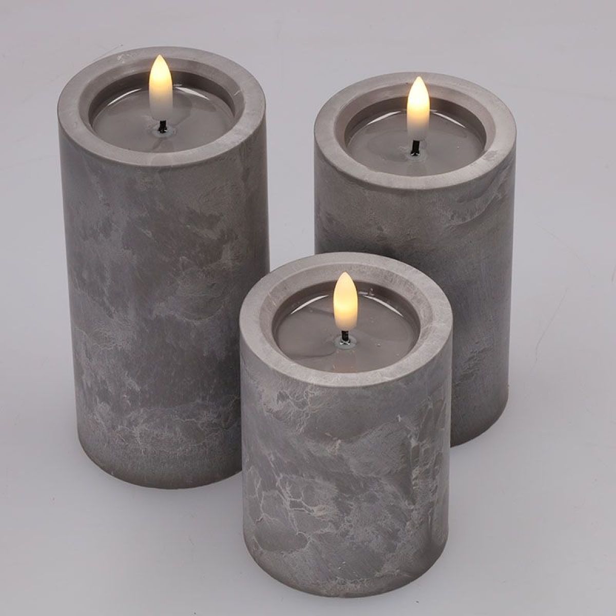 Solight Sada LED svíček s časovačem, 3x svíčka, 10,13,15cm, šedá, 2xAA