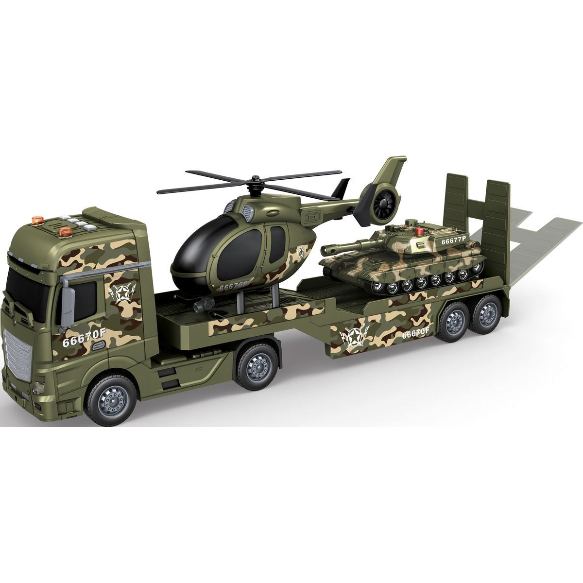 Součástí balení je také detailně zpracovaný vrtulník a tank, které lze převážet na tahači. Děti tak mohou vytvářet vlastní vojenské mise, transportní operace i akční scénáře.
